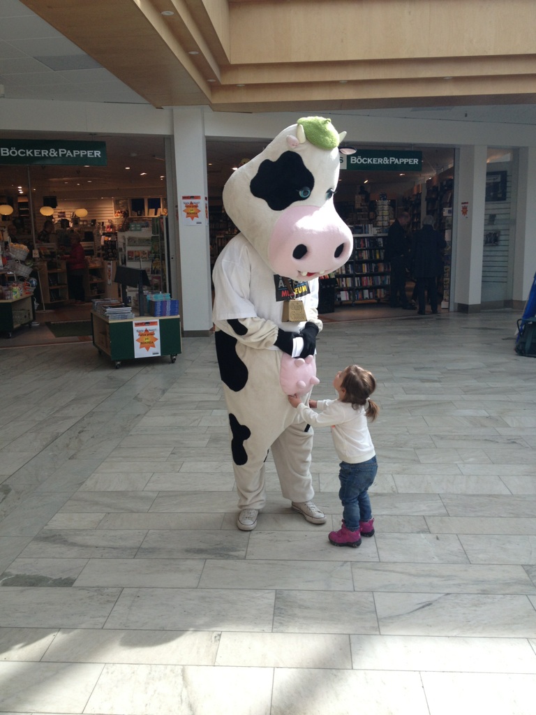 Vi var oxå i centrum och Bäbis hälsade på en kossa.