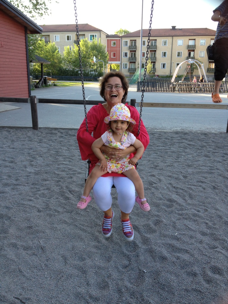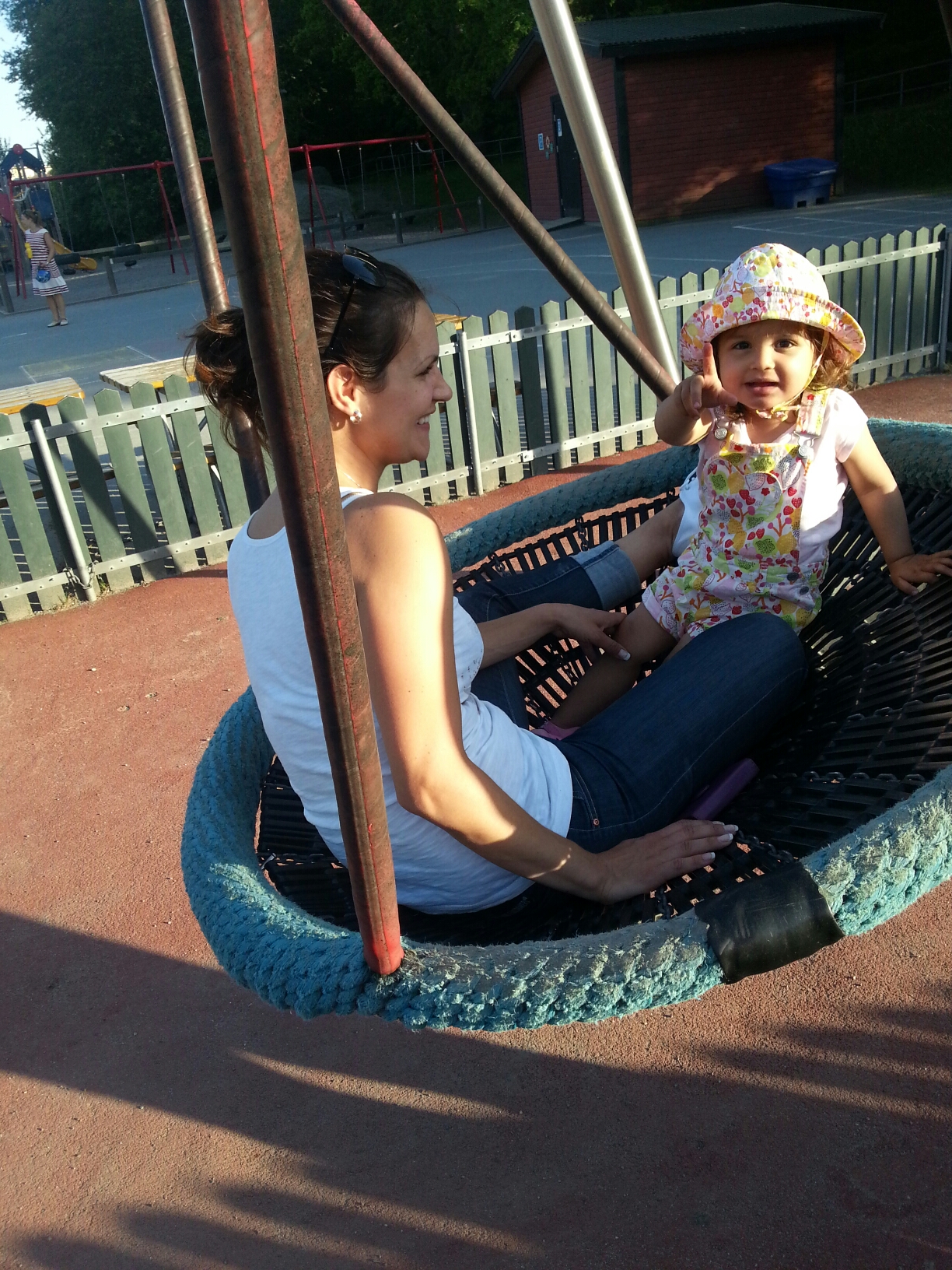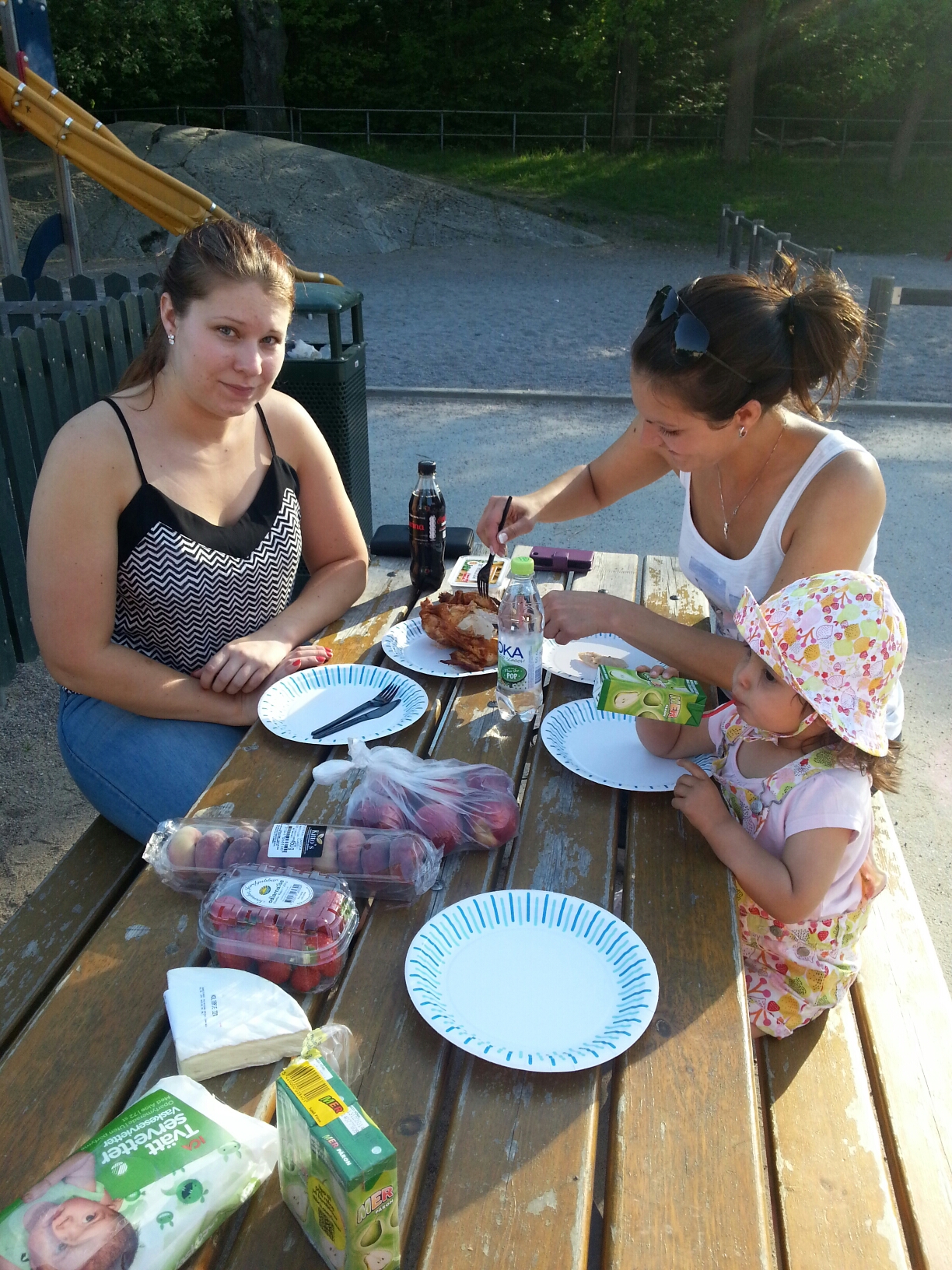 Efter jobbet handlade jag och sen kom Nettis, Bäbis och Jennifer hit. Vi gick tvärs över gatan till lekplatsen.