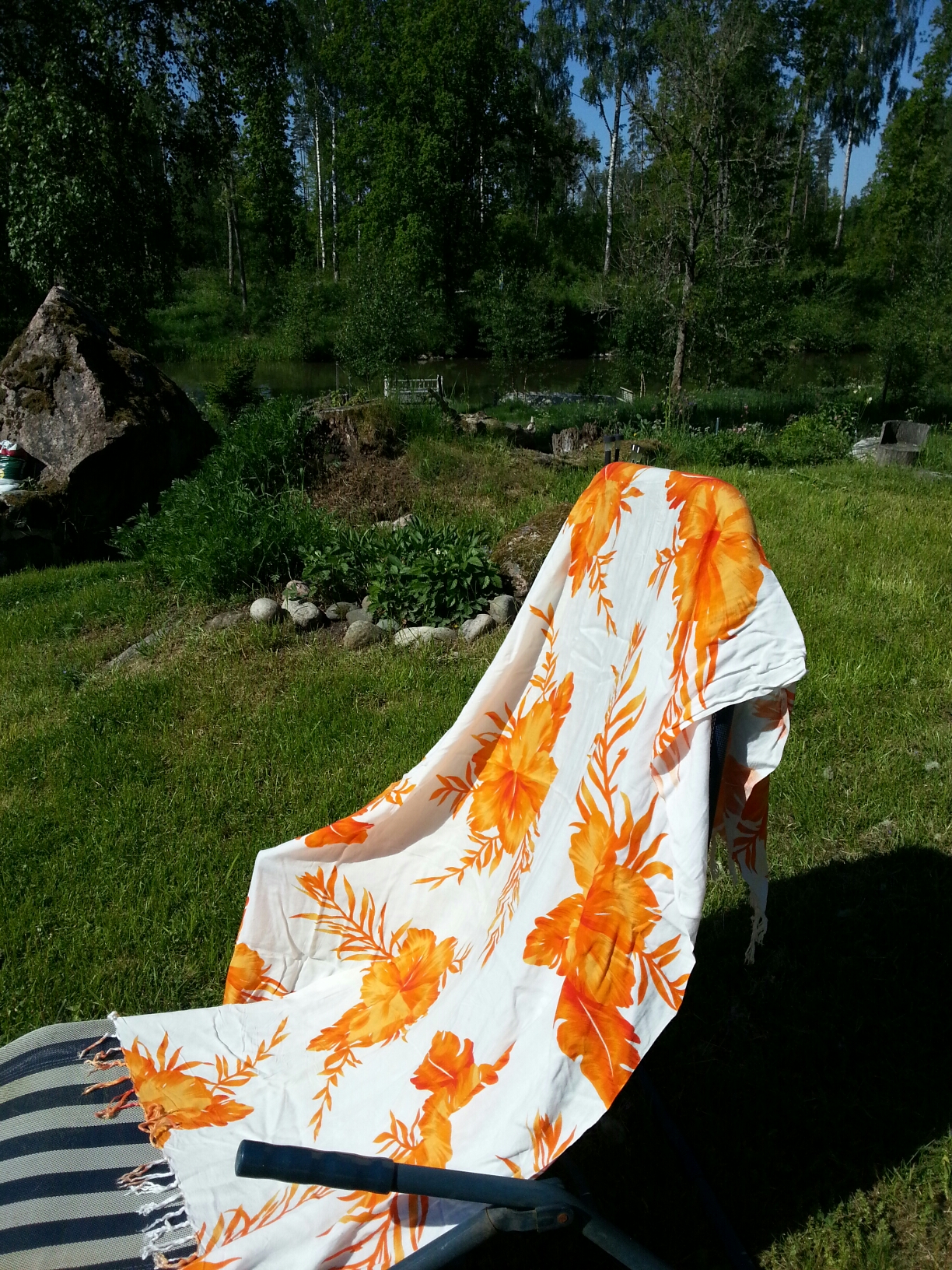 Jag är den enda av oss som solar, så jag har tagit dit en solstol till mig. M,L och MLs son jobbar mest.