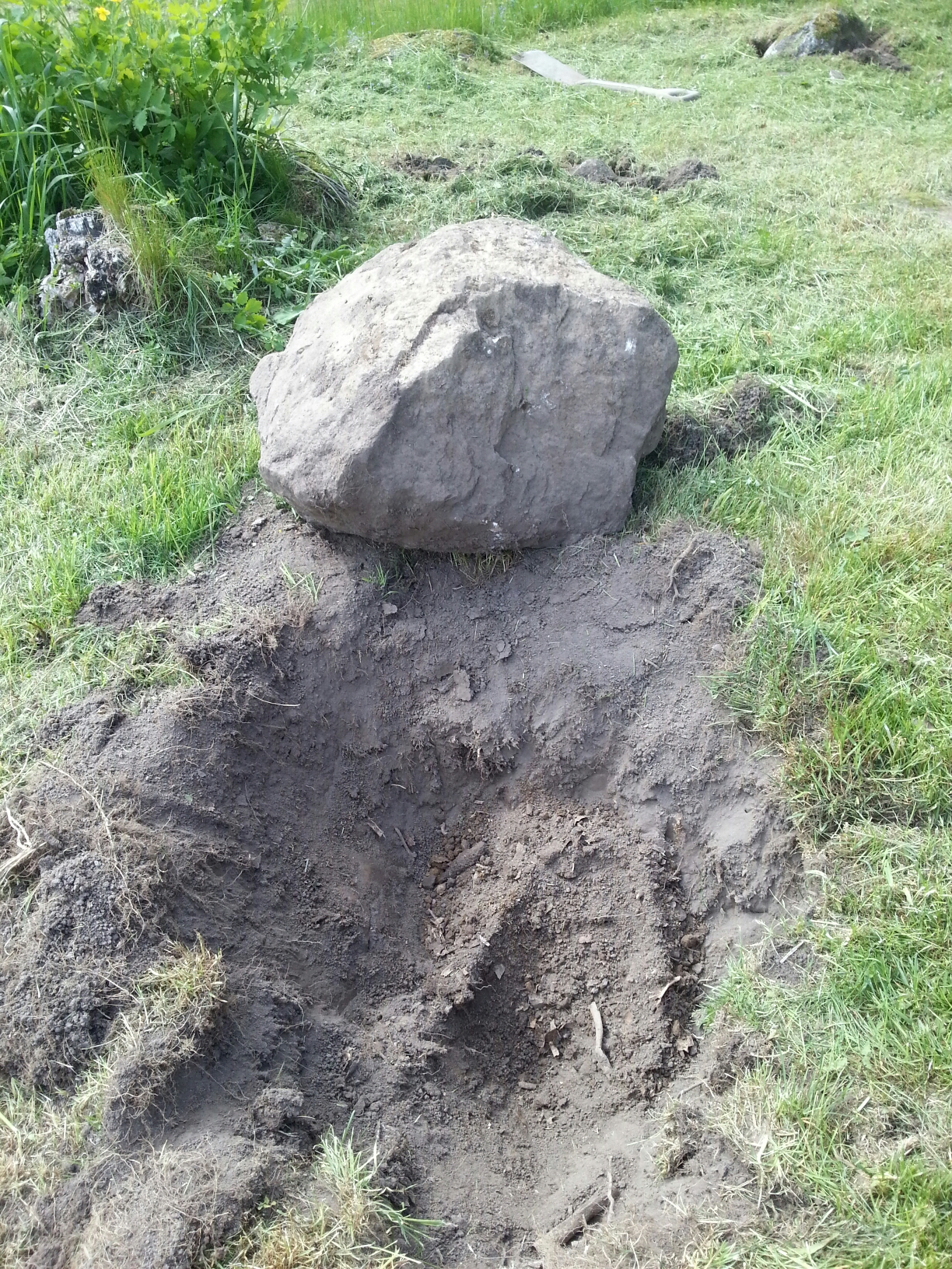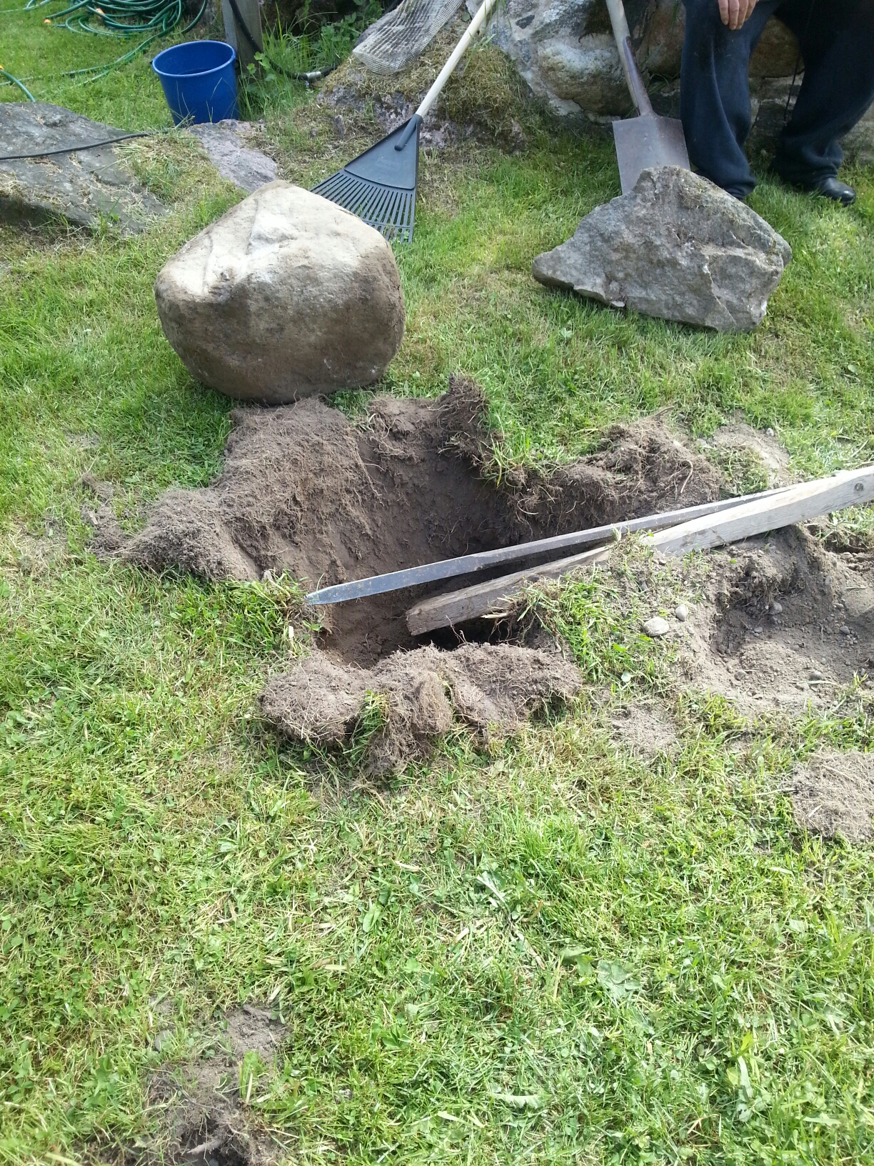 Efter träningen så hjälptes vi åt att få upp en massa (nåja, jag hjälpte bara till med 1, men det var den största) stenar ur gräsmattan. Nästa vecka ska det komma en massa jord, så då ska tomten a la Beirut bli platt och fin!