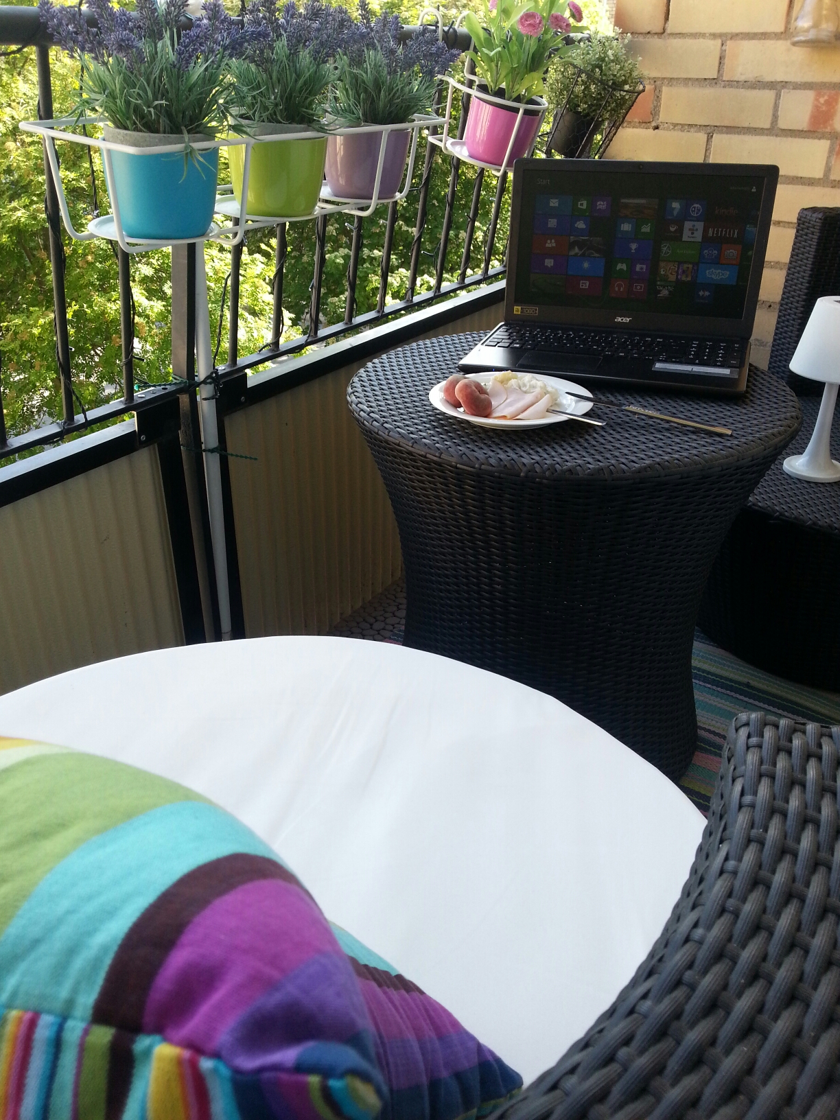 Satt på balkongen och åt, och tittade på Selfridges. Mysigt!!
