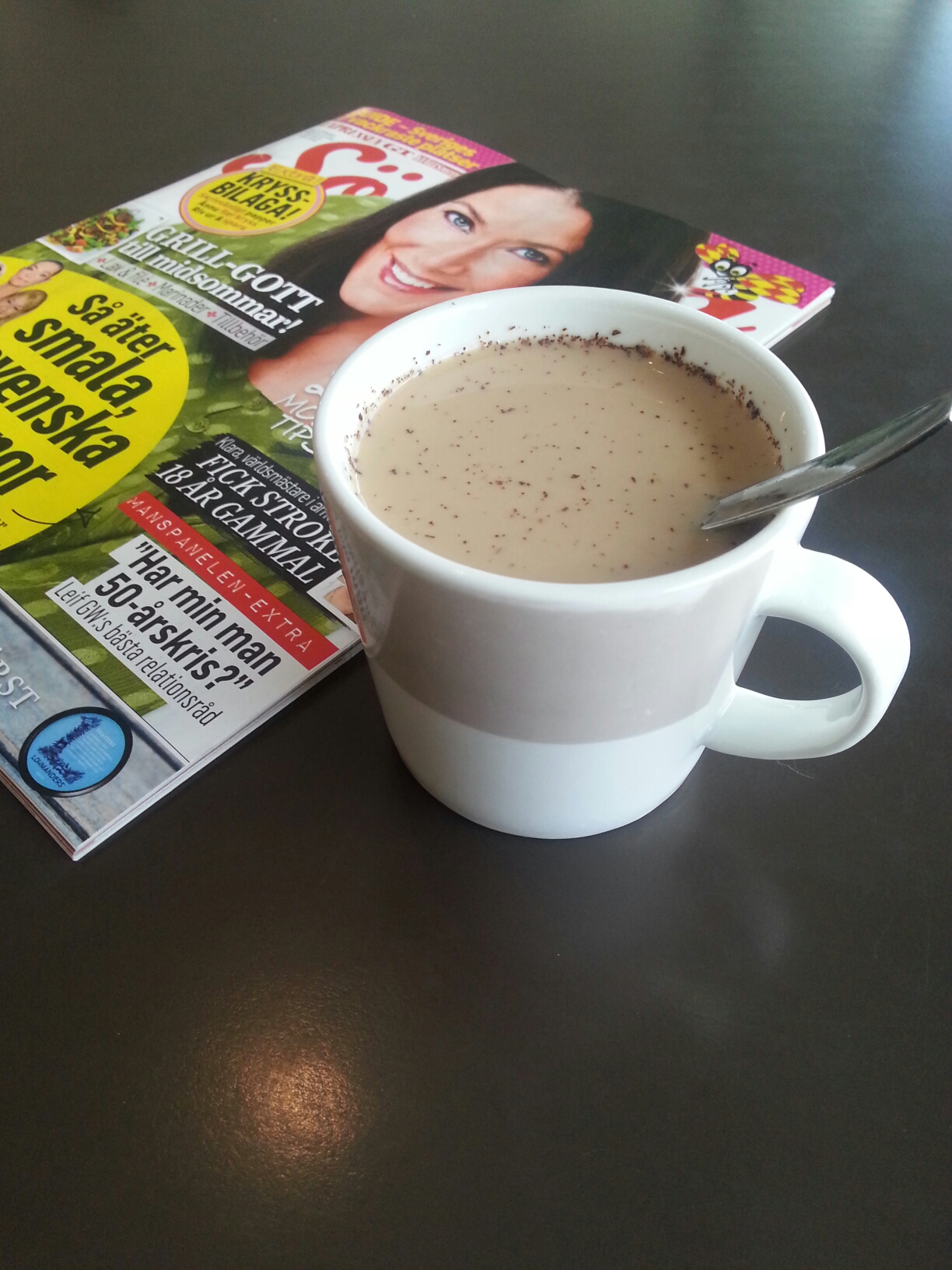 Så nu sitter jag på mitt favvofik med wn kaffe med mjölk och kardemumma.