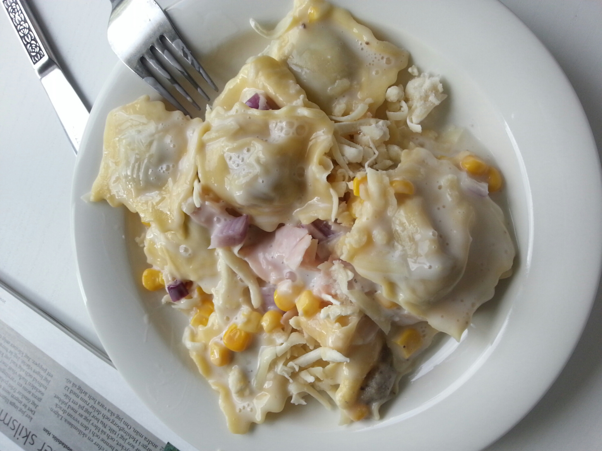 Ser mycket ut, men jag äter ju på assiett. Kerstin tipsade om Milda matlagningsgrädde med bara 4% fett. Riktigt bra!! Så det blev en god middag och jag har 2 portioner kvar. Väry bra!