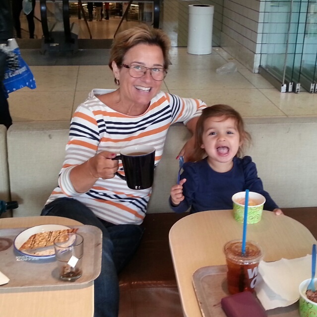 Jag har oxå träffat Nettis och Bäbis i centrum och fikat. Bäbis har tjatat om att hon vill åka buss igen. Och för henne innebär det att man åker till centrum, träffar mig och äter glass.