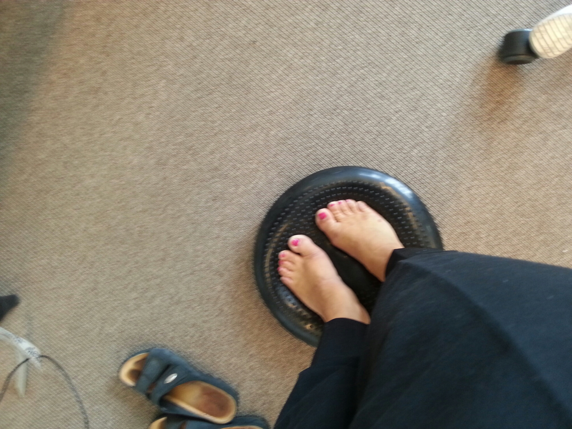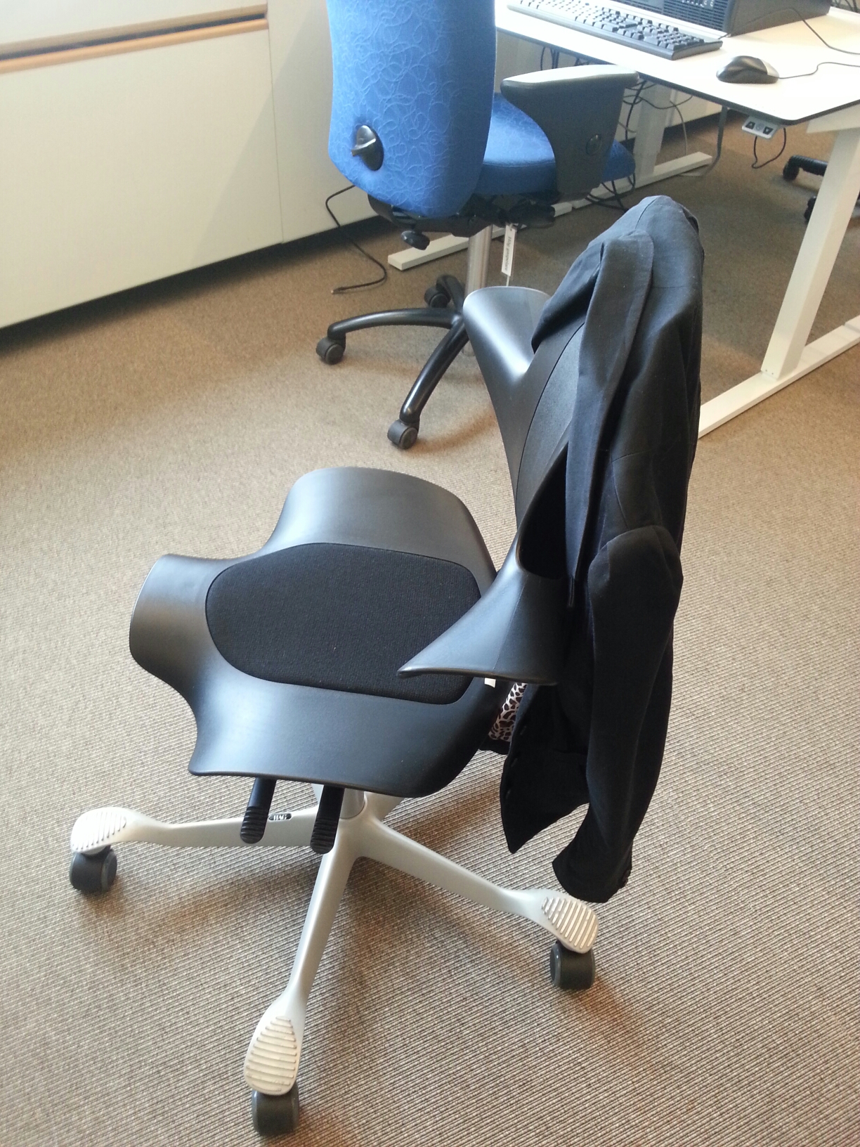 Igår var det en ergonom på jobbet som föreläste och sen kom till våra arbetsplatser och checkade. Jag hade bett att hon skulle komma till mig för att se vad jag behöver ändra på. 90% av alla sitter bra på de stolar vi har och vid de skrivbord vi har. De är inställbara och höj- och sänkbara. Men föga förvånande så tillhör jag så klart de andra 10%… Ovanligt kort i rocken, kan man säga. Jag skulle så klart behöva ett bord som går att sänka ännu mer. Och de stolar vi har är dels för djupa i sitsen för taxben och går inte att sänka tillräckligt. Jag dinglar med benen när de är som lägst… Men så lyckades vi hitta 2 annorlunda stolar, och med en sån satt jag bra! Och då behövde jag faktiskt inte ett annat bord heller! image Det är dessutom gungfunktion på den. Superbekväm!! Sen sa hon ju så klart att man bör stå upp mellan varven. Om man står upp 8 timmar per dag så förbränner man lika mycket som 3 gympapass!! Vem hade trott det?? Gissa vem som står upp vid skrivbordet just nu? En kollega har en balanskudde som hon både står och sitter på. Jag fick testa och en sån ska jag köpa! Finns på Ellos för bara 299 kr. image Bra övning när man ändå står!!