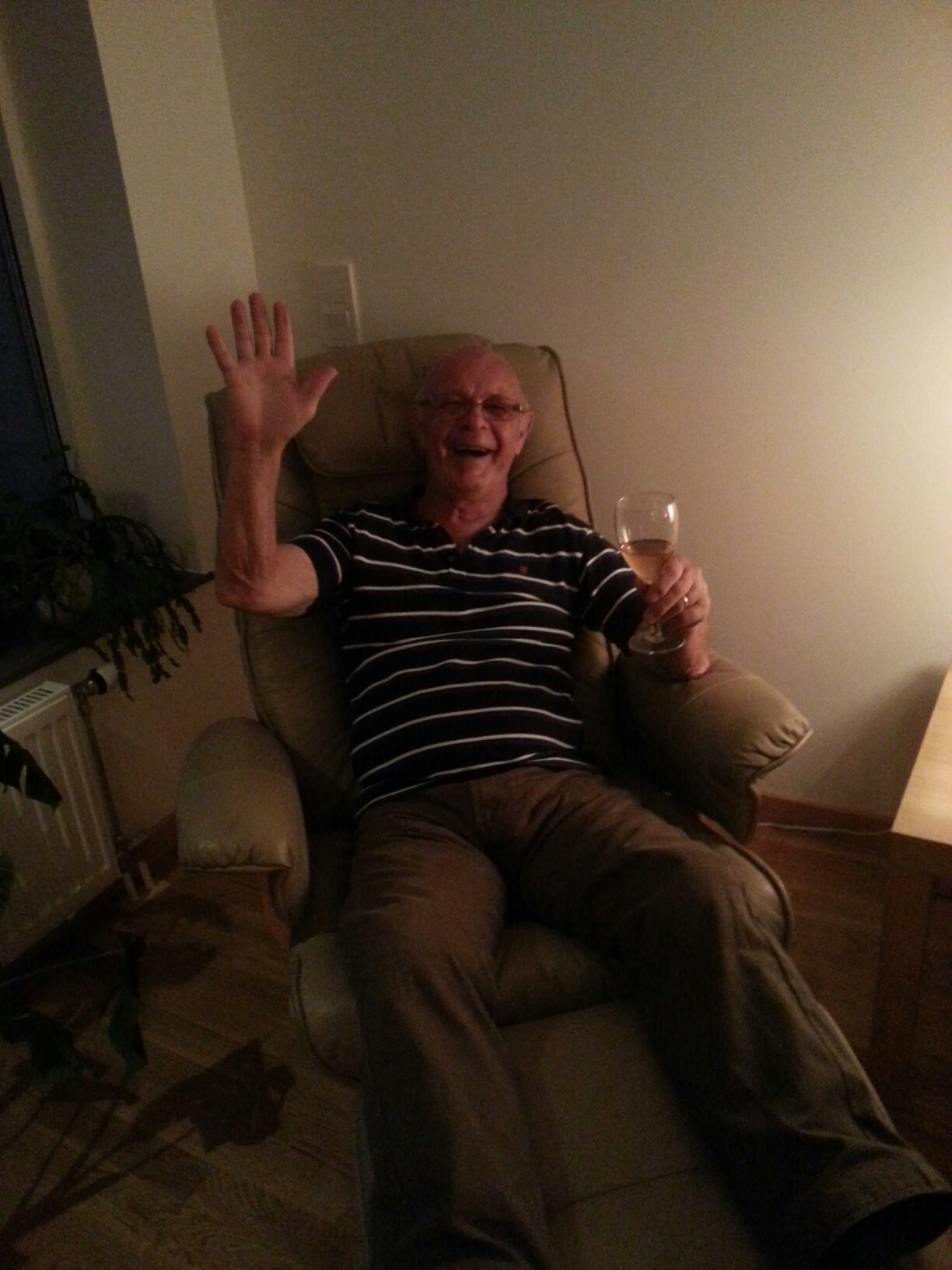 … valde pappsen att ta ett (vin-)glas med whiskey och sätta sig i fåtöljen och kommentera allt vi packade upp.