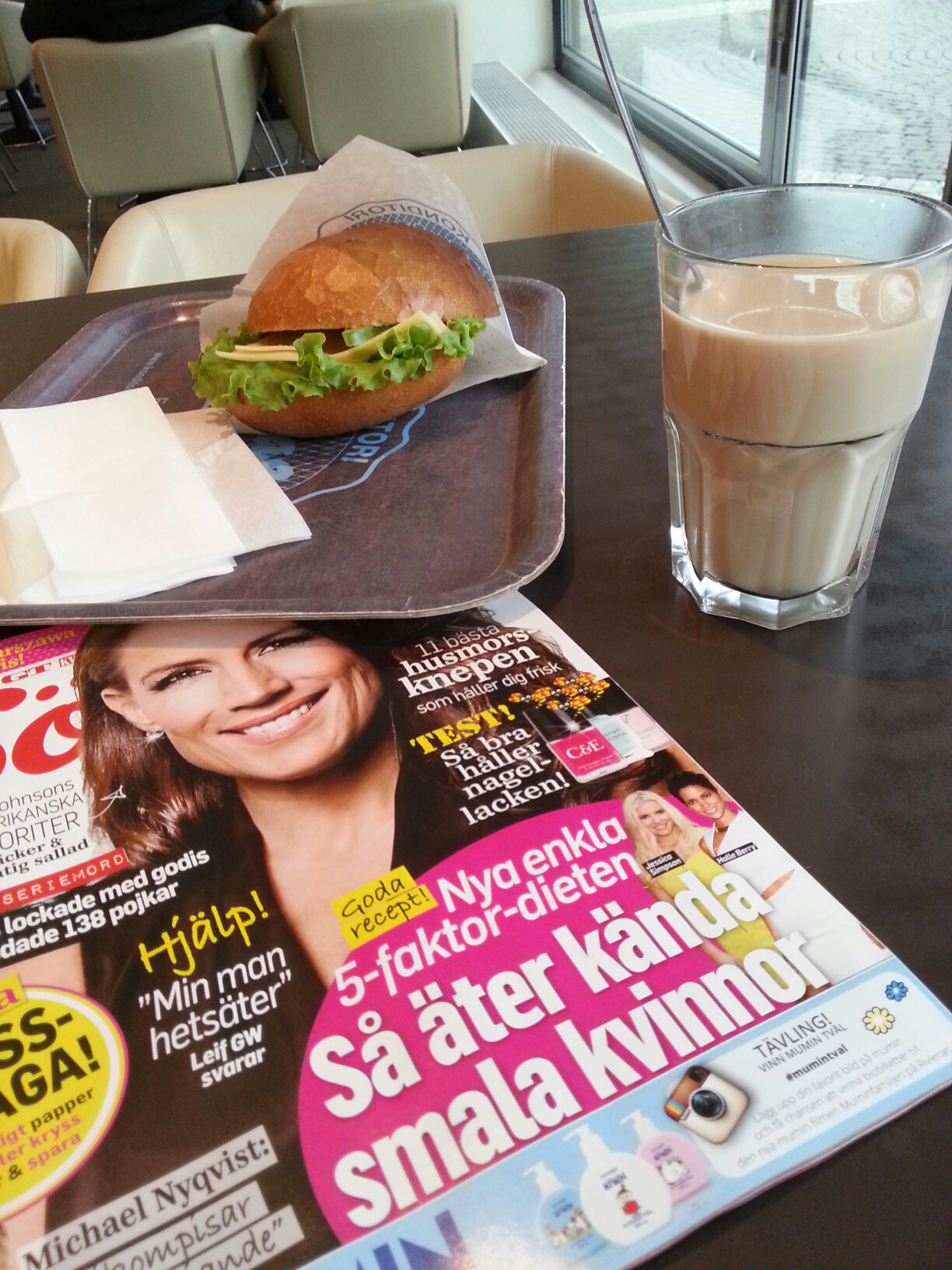 Nu sitter jag på favvofiket (det gamla, det nya har inte öppnat) och äter frukost.