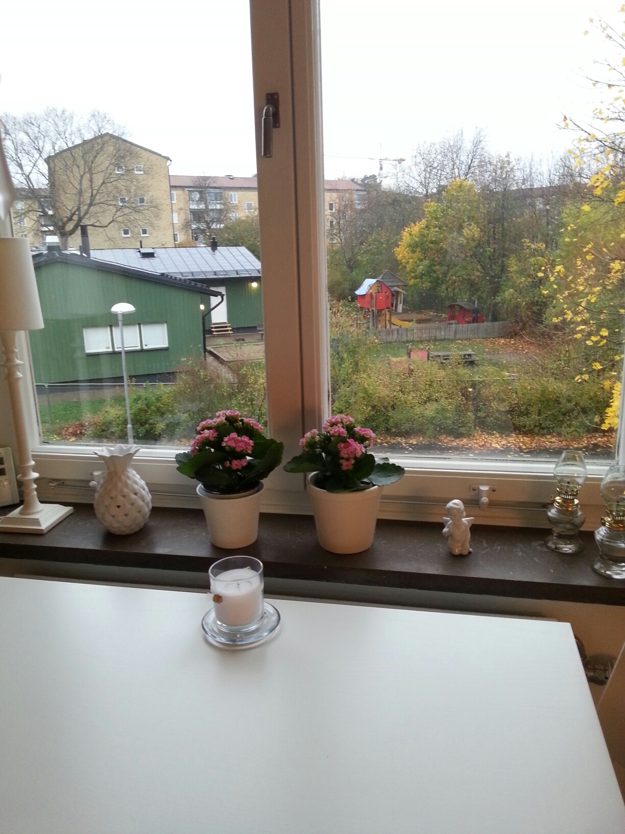 Lite gulligt med rosa blommor istället för en grön växt. Den bor nu i vardagsrummet i stället.