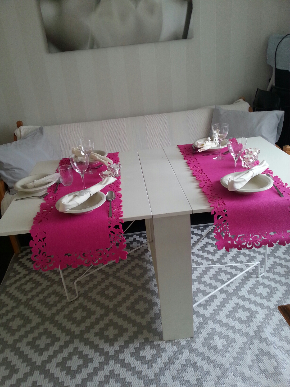 Jag hade dukat i lilla rummet som för dagen alltså var matsal.