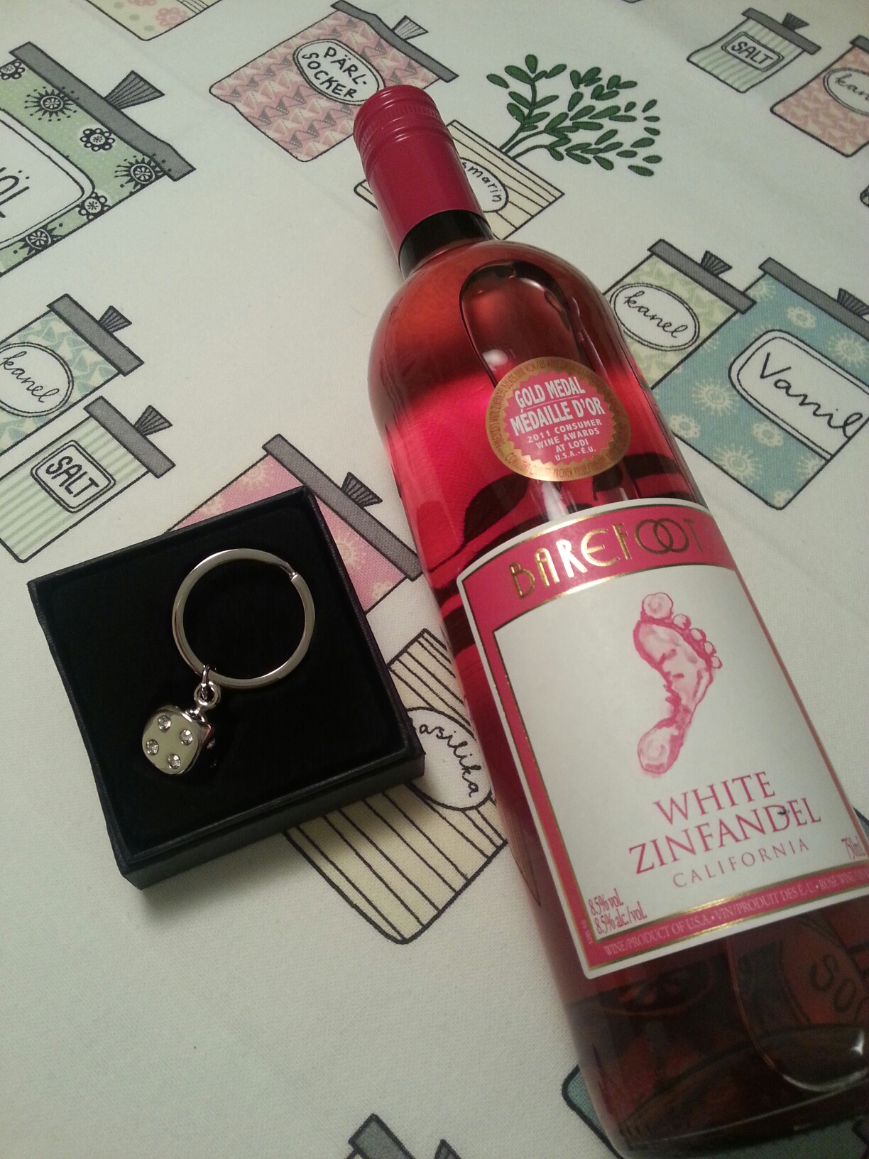 Husfruen hade med en flaska rosévin och Mona en fin nyckelring. Den ska jag sätta nyckeln till vrålåket på!