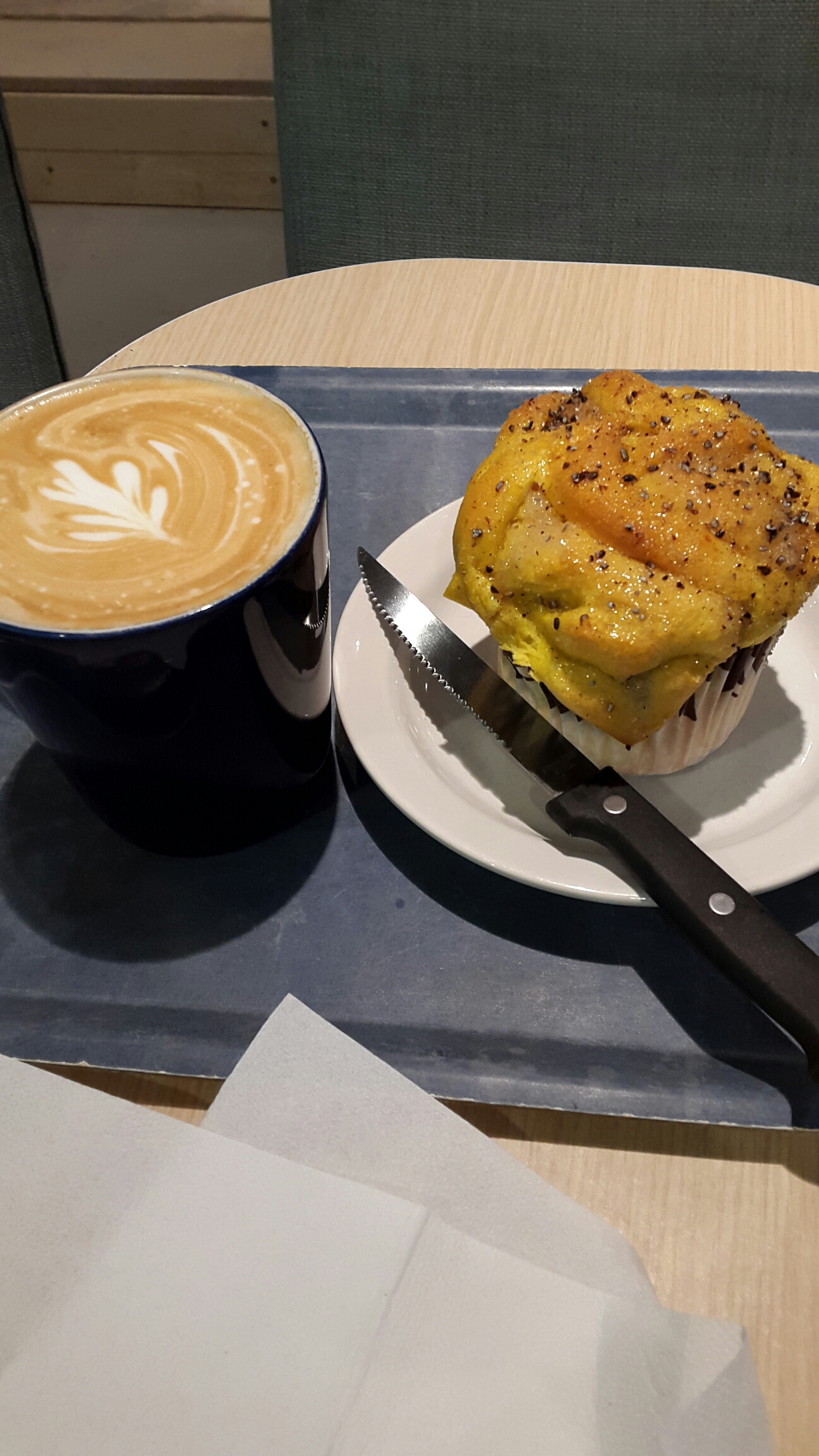 Älskar saffransbullar men den här var STOR! Delade och har ätit knappt halva, resten får följa med hem.