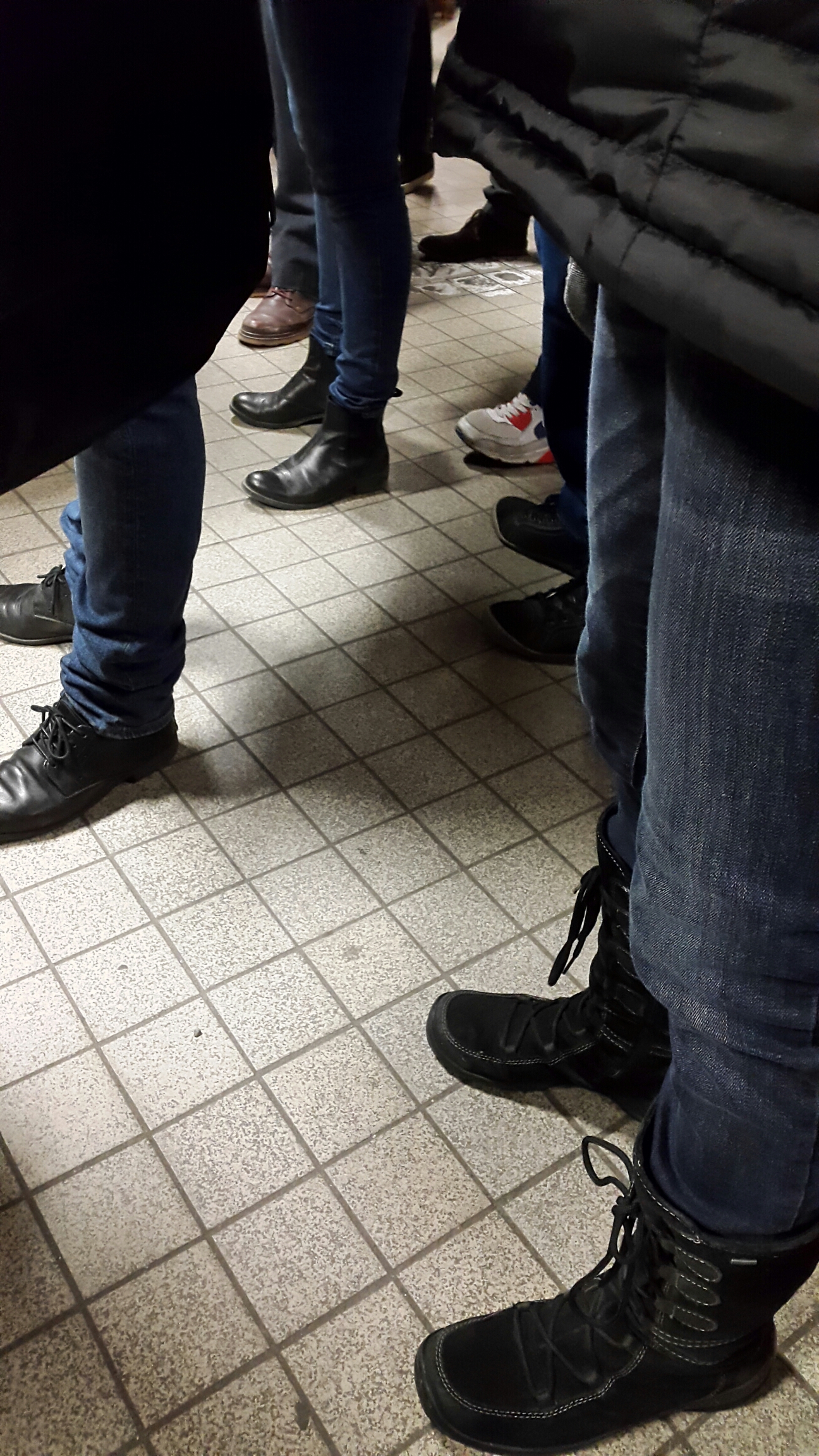 Det var knökfullt på perrongen! Det var strul i trafiken så det var ännu fler personer än vanligt. När tunnelbanan kom så behövde jag inte röra mig framåt själv, jag knuffades fram av alla bakom! Nästan otäckt!