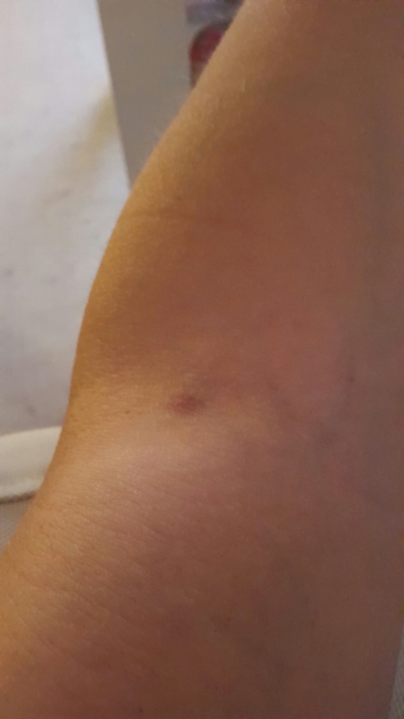 Slängde mig i soffan efter maten och kollade på TV. Fick syn på min arm, där hon stack mig imorse.