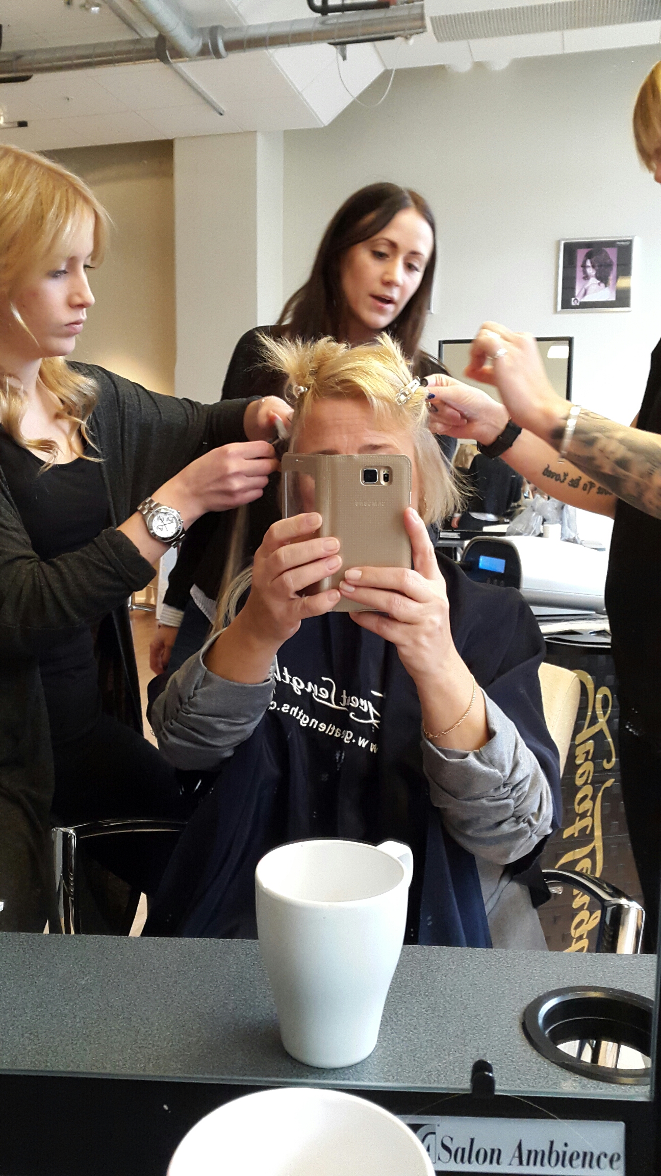 Det var elever som gick utbildning på Great Length son satte i hårförlängningen på mig igår. Och det är verkligen annorlunda att vara kund och att vara läromedel!
