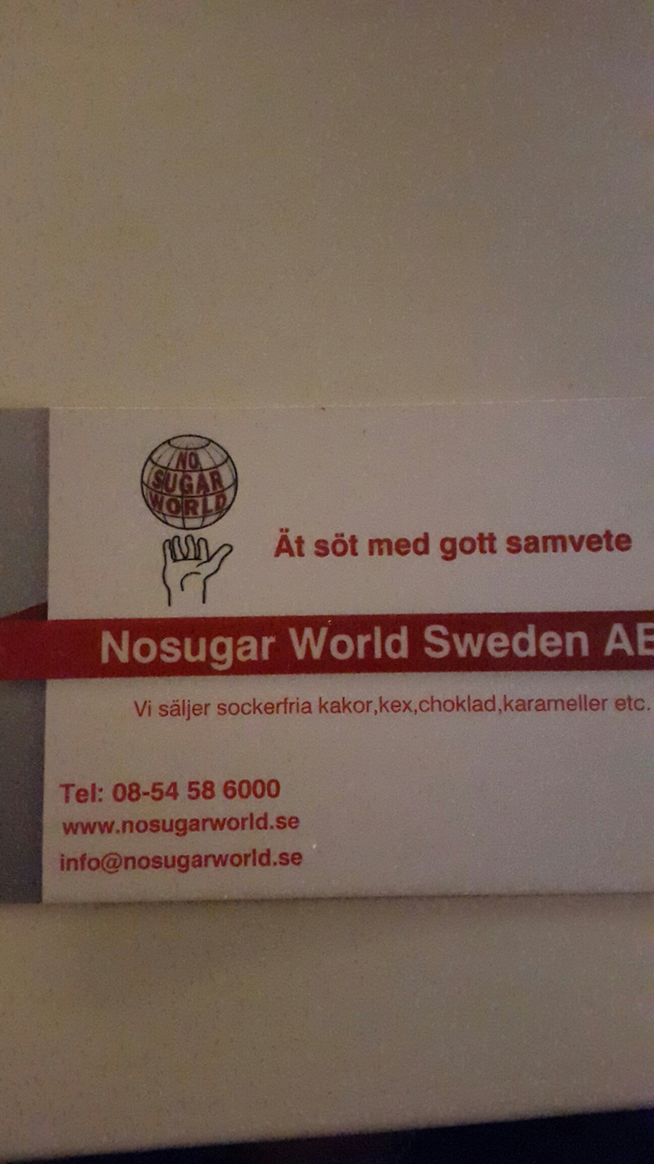 Hittade en liten tillfällig butik som sålde sockerfria kex, kakor och choklad. De har en hemsida som man kan skicka efter ifrån.