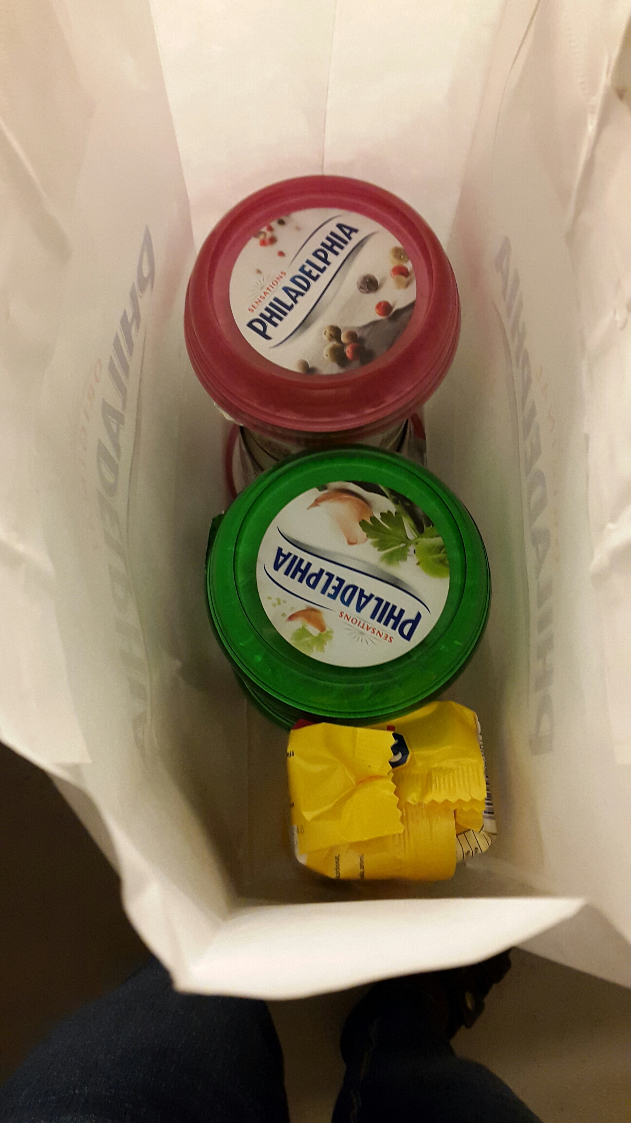 När vi kom till Hötorget stod det 2 tjejer och delade ut påsar från Philadelfiaost.
