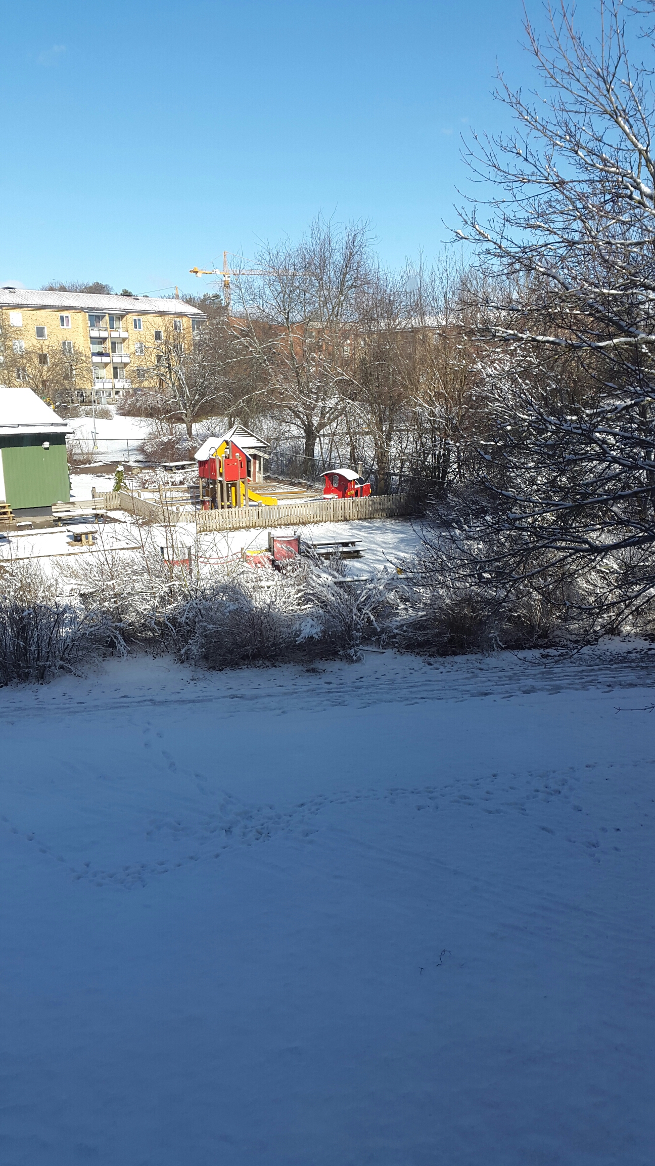 Jag klev ur sängen vid 10 och blev förvånad, eller chockad, när jag såg att det är alldeles vitt ute. Snö på marken, buskar och överallt! ! Blä!!