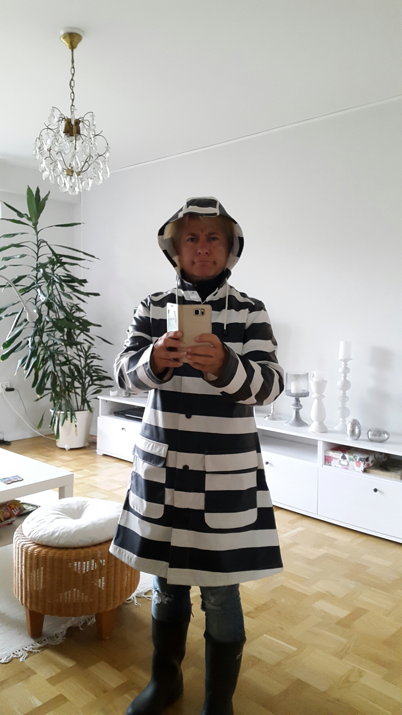 Fleecetröja under regnkappan och sjumilastövlar på. Igen!!
