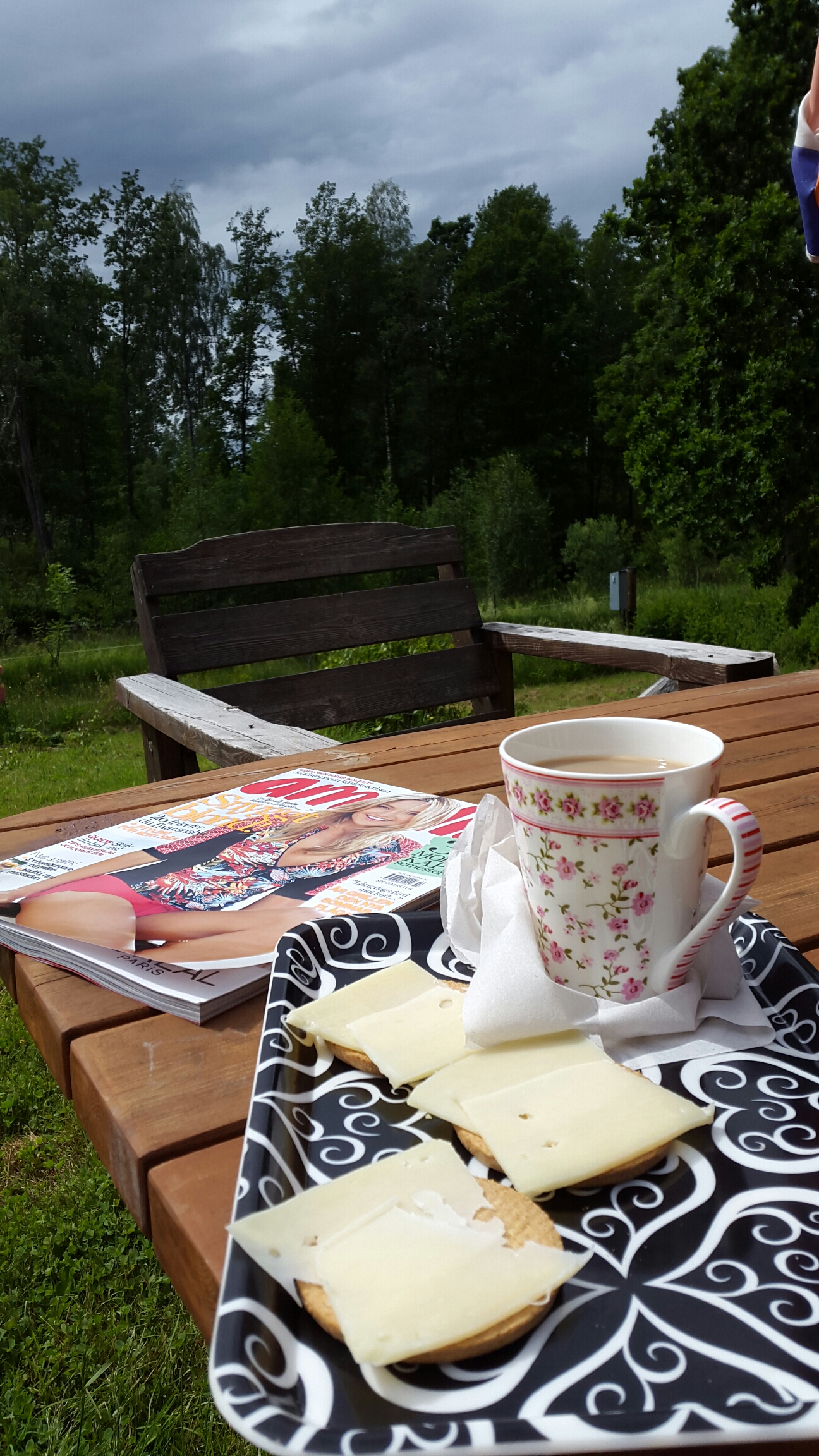 Nu sitter ja på landet med en veckotidning och en lattekaffe.