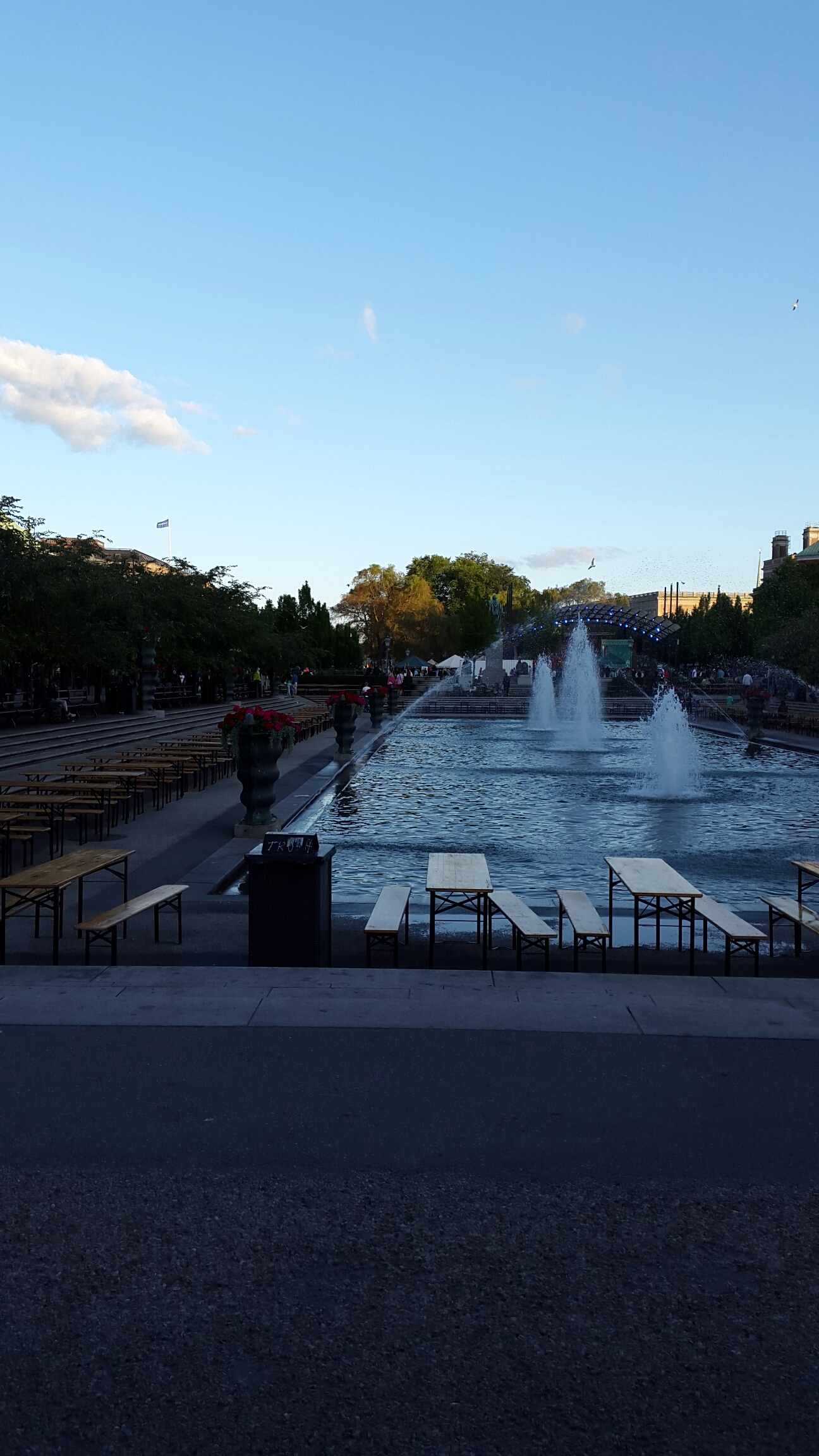 Precis som de flesta dagar så har vi hunnit med alla sorts väder idag. Men vi kunde sitta ute och äta och titta på folk, det var en fin kväll. Lite kyligt nu när jag är på väg hem, bara.