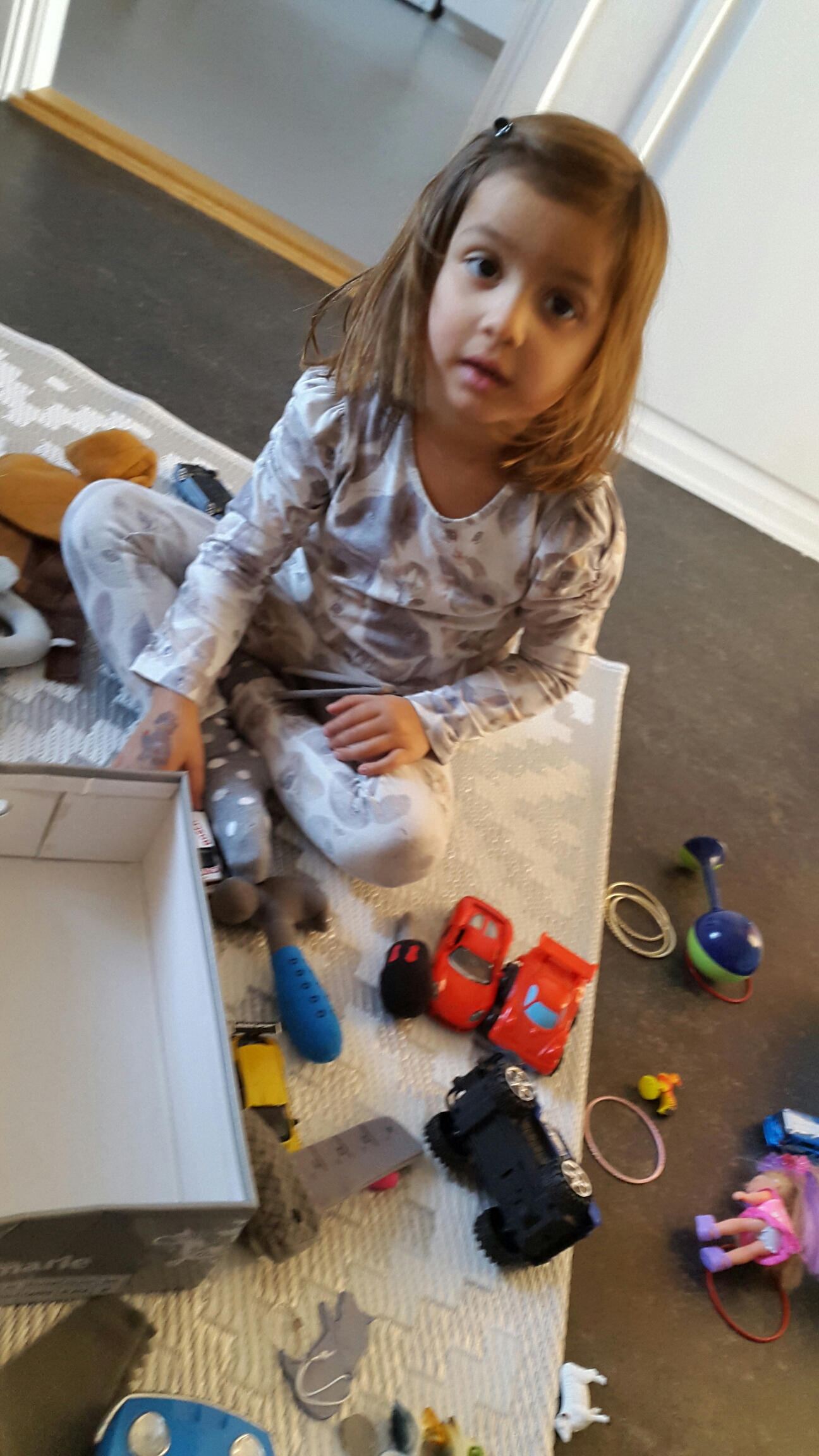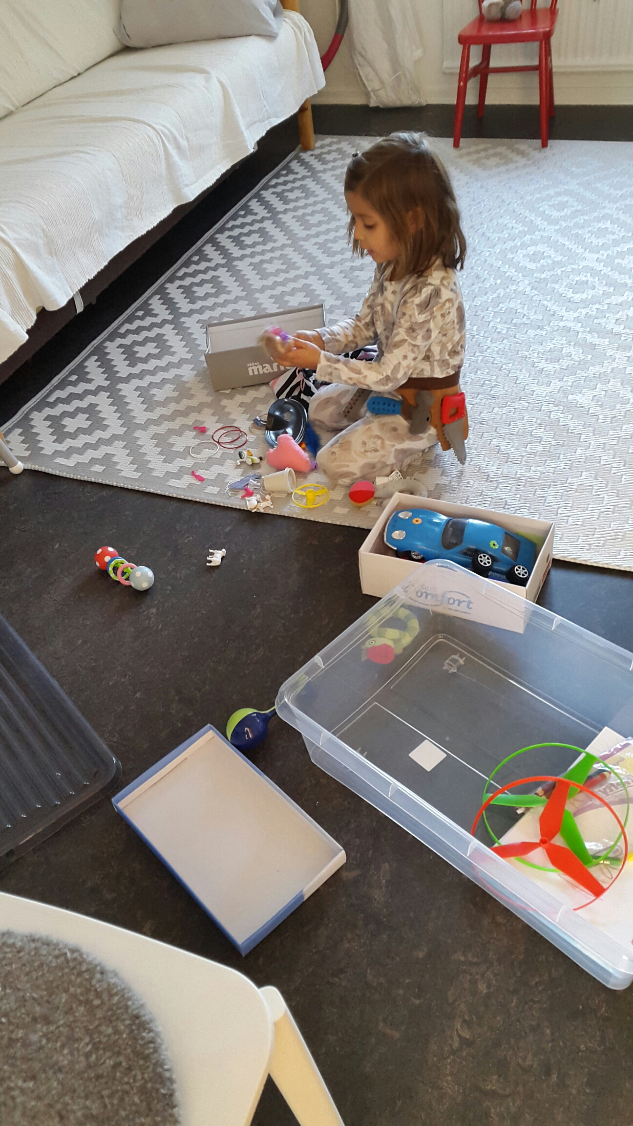 Saker överallt! Och hon kommer ihåg allting! -Var är den lilla dockan? – Jag har väl ingen liten docka, säger jag. – Jo, i en låda! Och det stämde ju så klart. Jag hade ju lite fler saker i en skokartong.