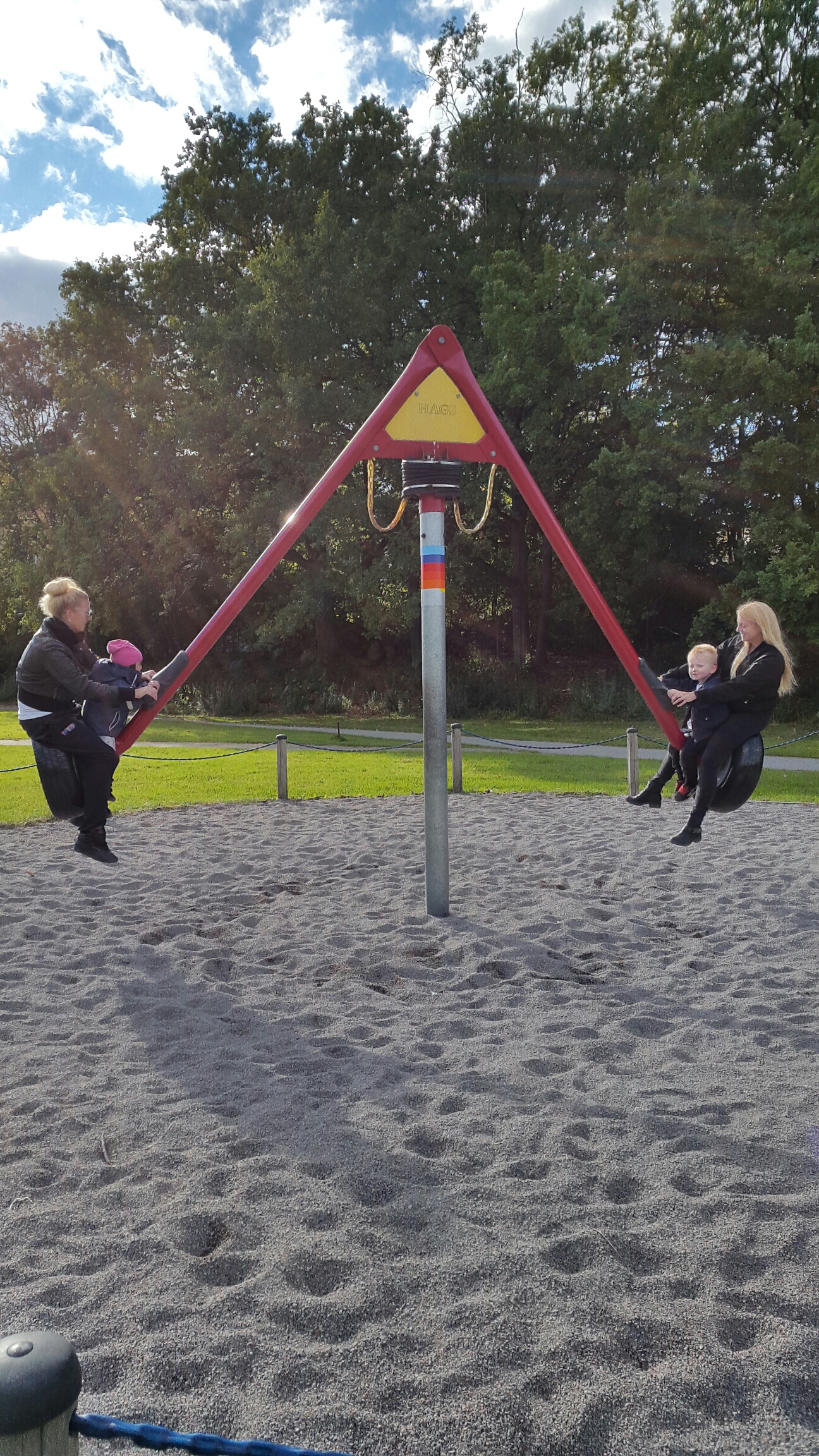 Sen kom Carina och vi fikade och Bäbis åt fil och flingor. Sen gick vi ut i parken och lekte med Carinas barnbarn.