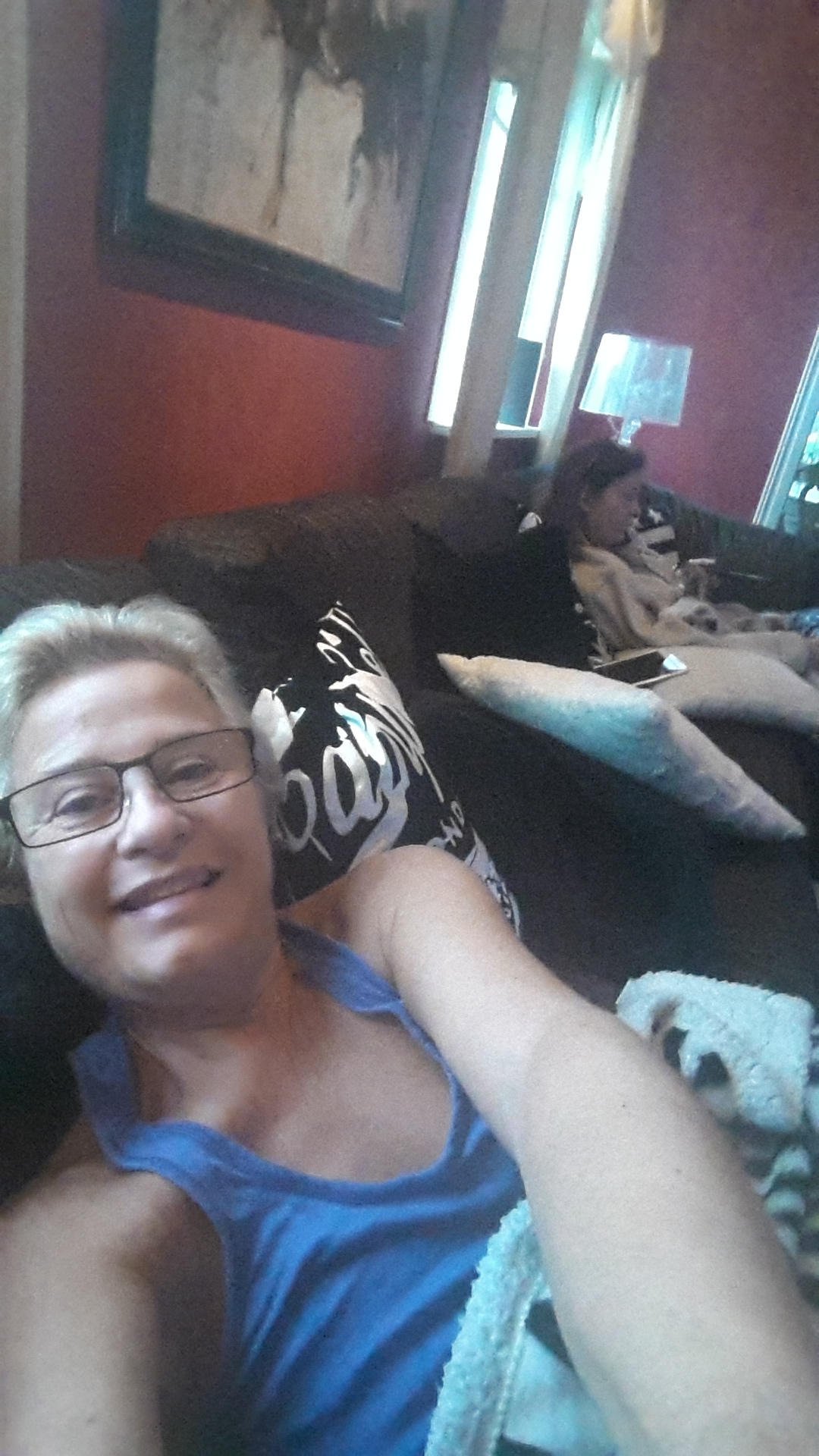 Jag sov hos Jaja och somnade innan huvudet landade på kudden.