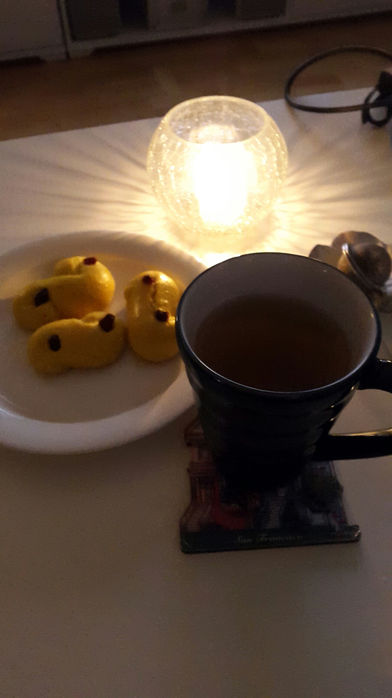 Jag tinade några lussebullar och drack te när jag babblade med de andra.