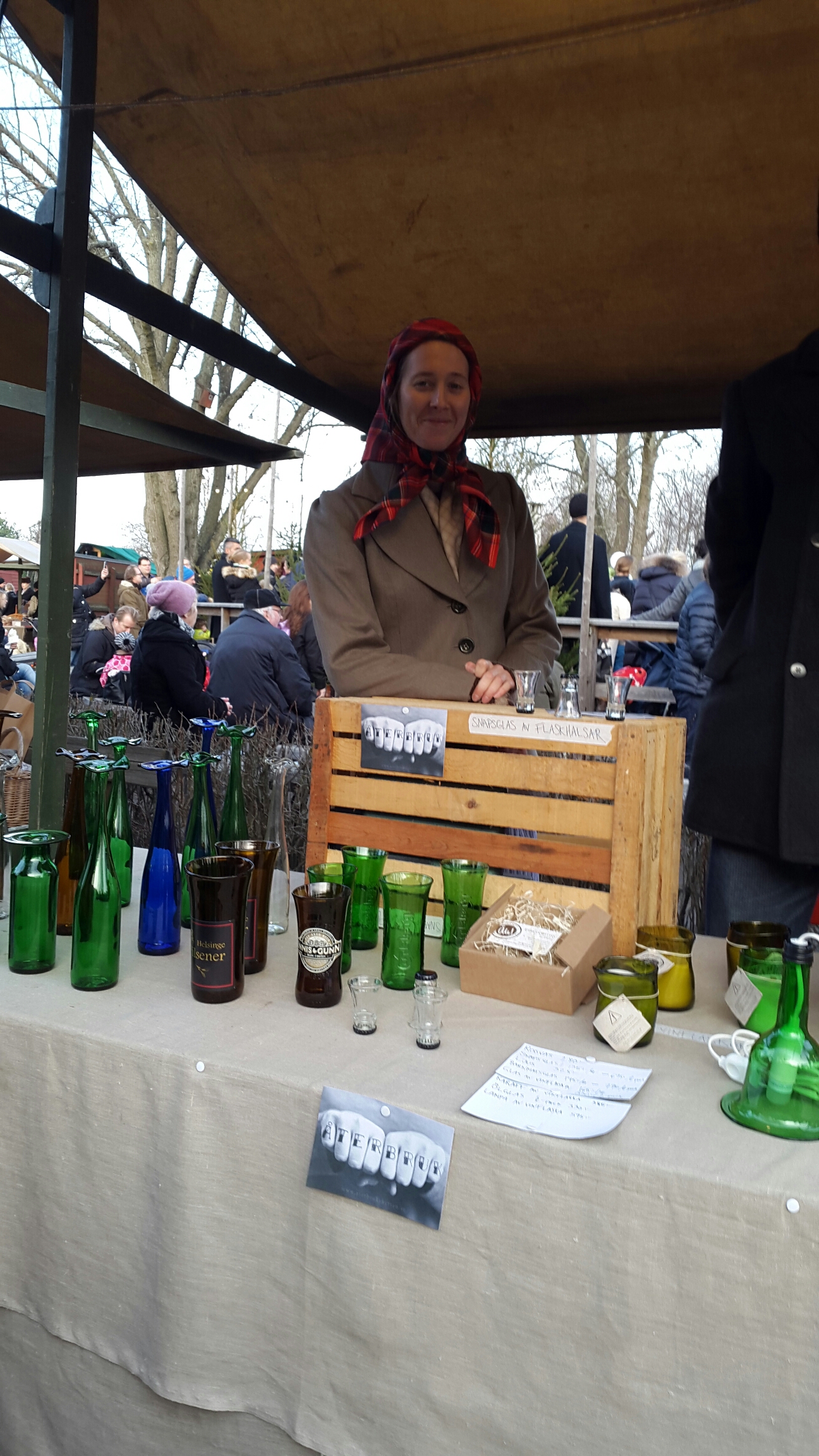 Sen tittade vi på julmarknaden, och Pojken var så fascinera av glassaker som de gjort av återvunna ölflaskor.