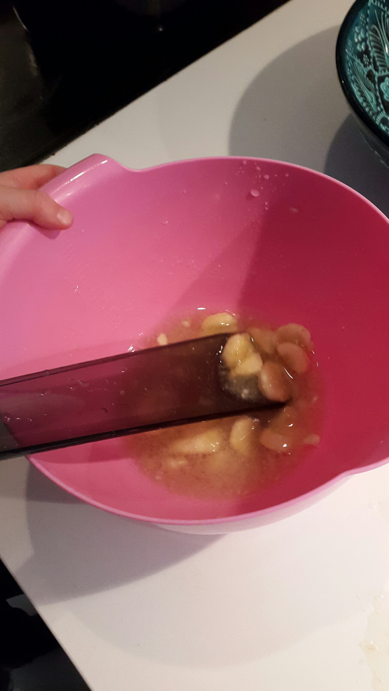 Så han svängde ihop mosad banan med vatten och en godis.