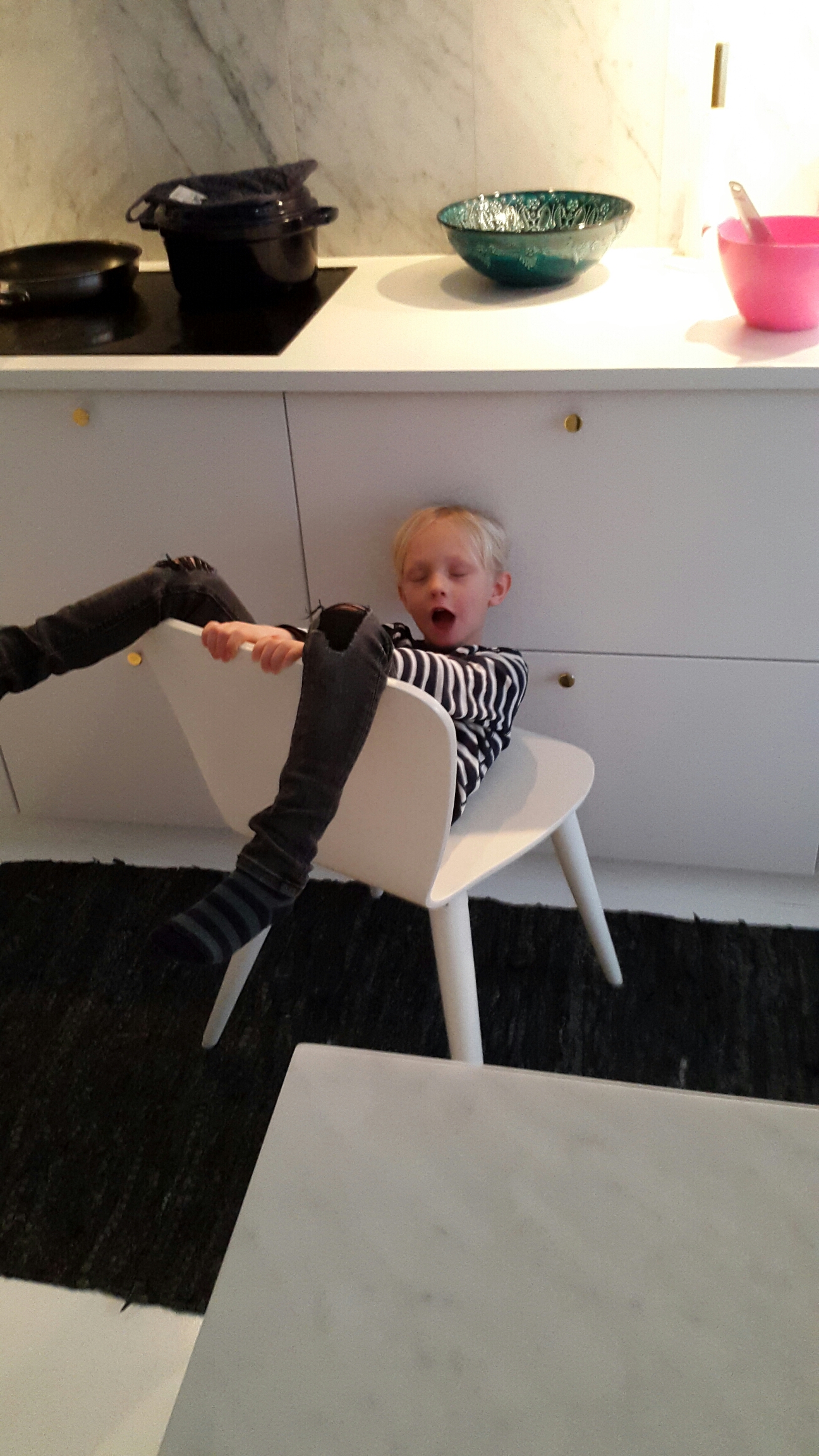Att vara kock tar på krafterna, så han la sig tillrätta på en stol och vilade lite sen.