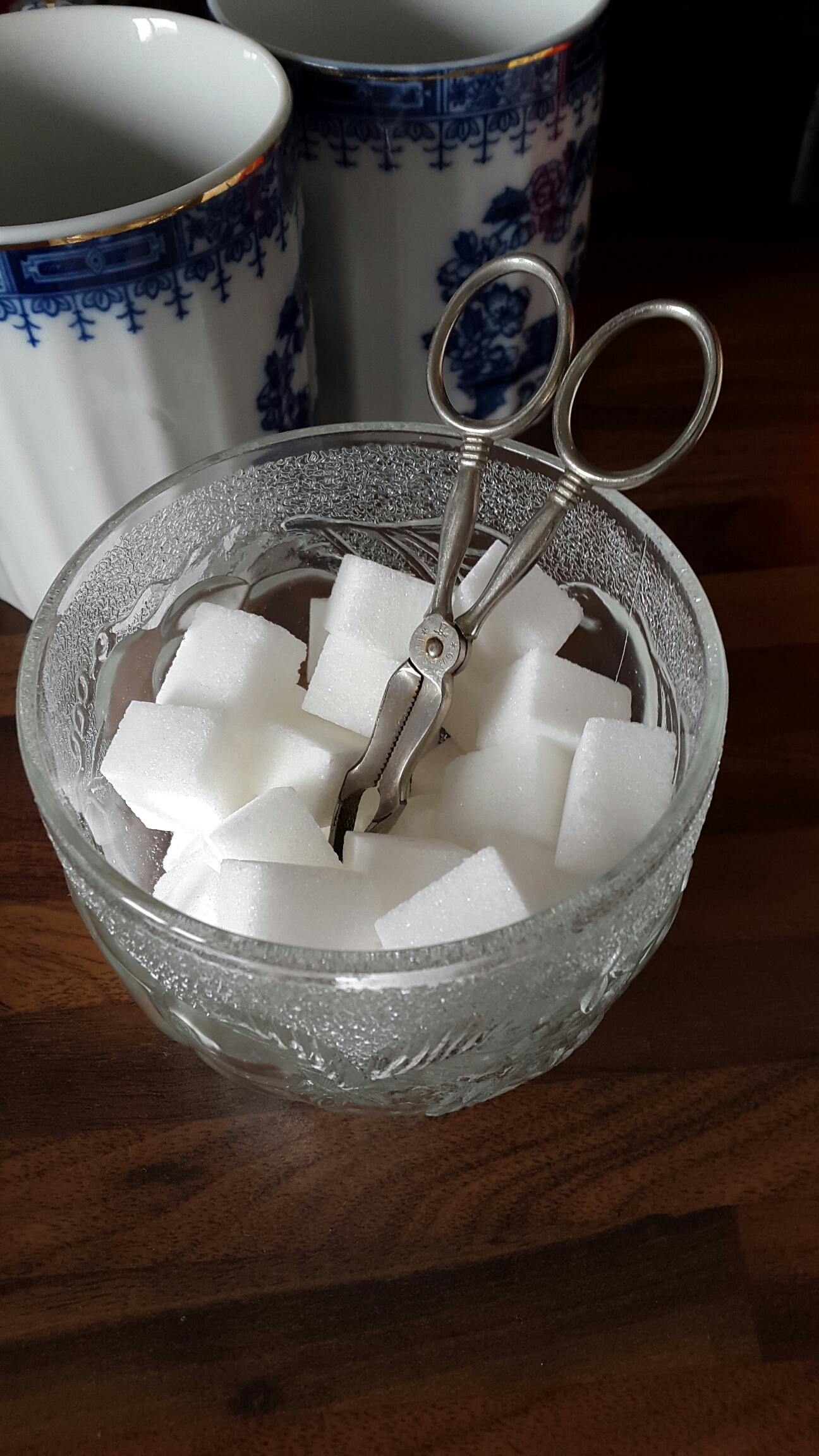 Diskbänken blev full med muggar, tekokare och kaffebryggare och termosar.