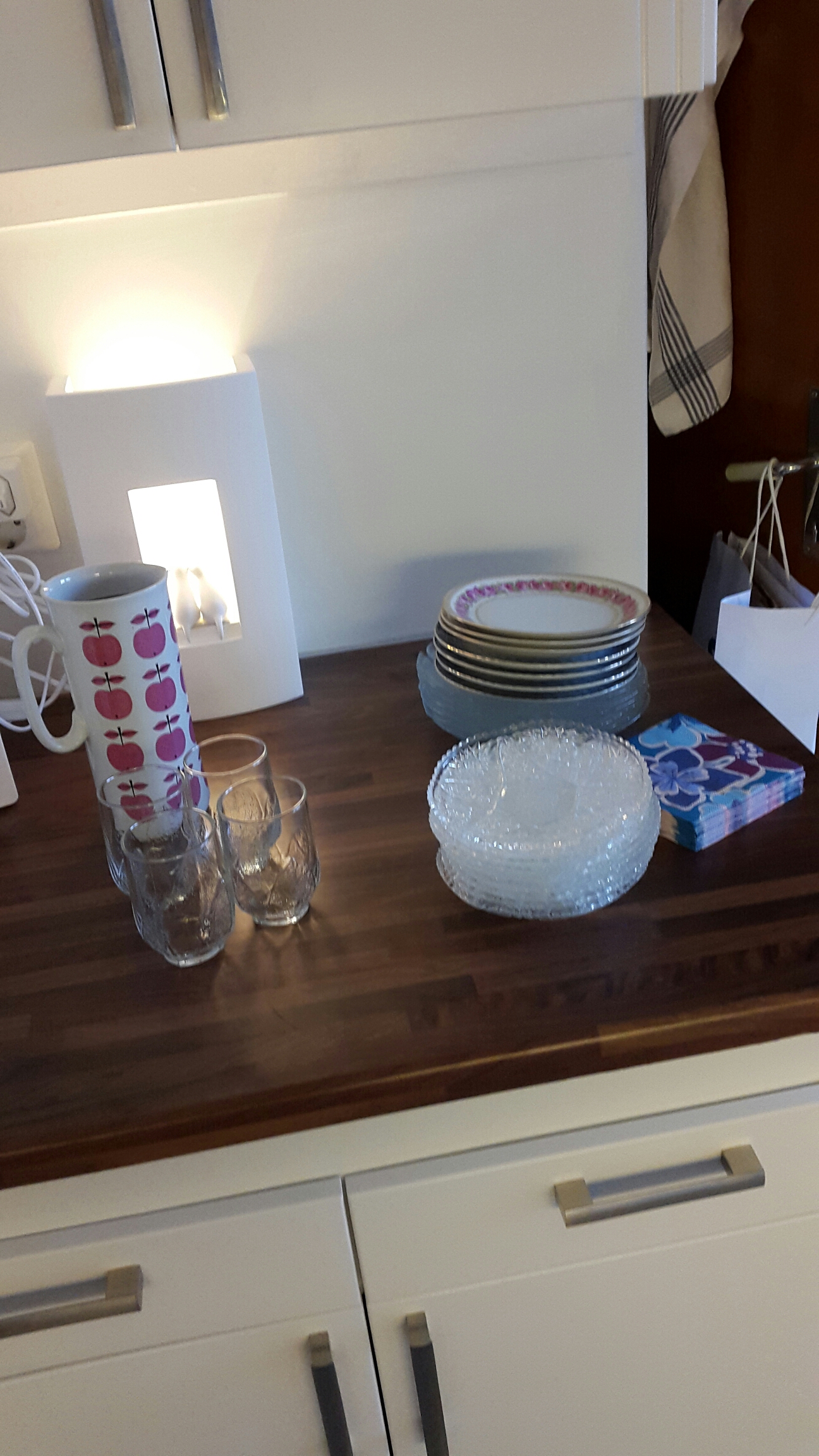 Jag plockade undan mina jackor i hallen så gästernas kläder skulle få plats. Och så satte jag in 2 extra bord i vardagsrummet.