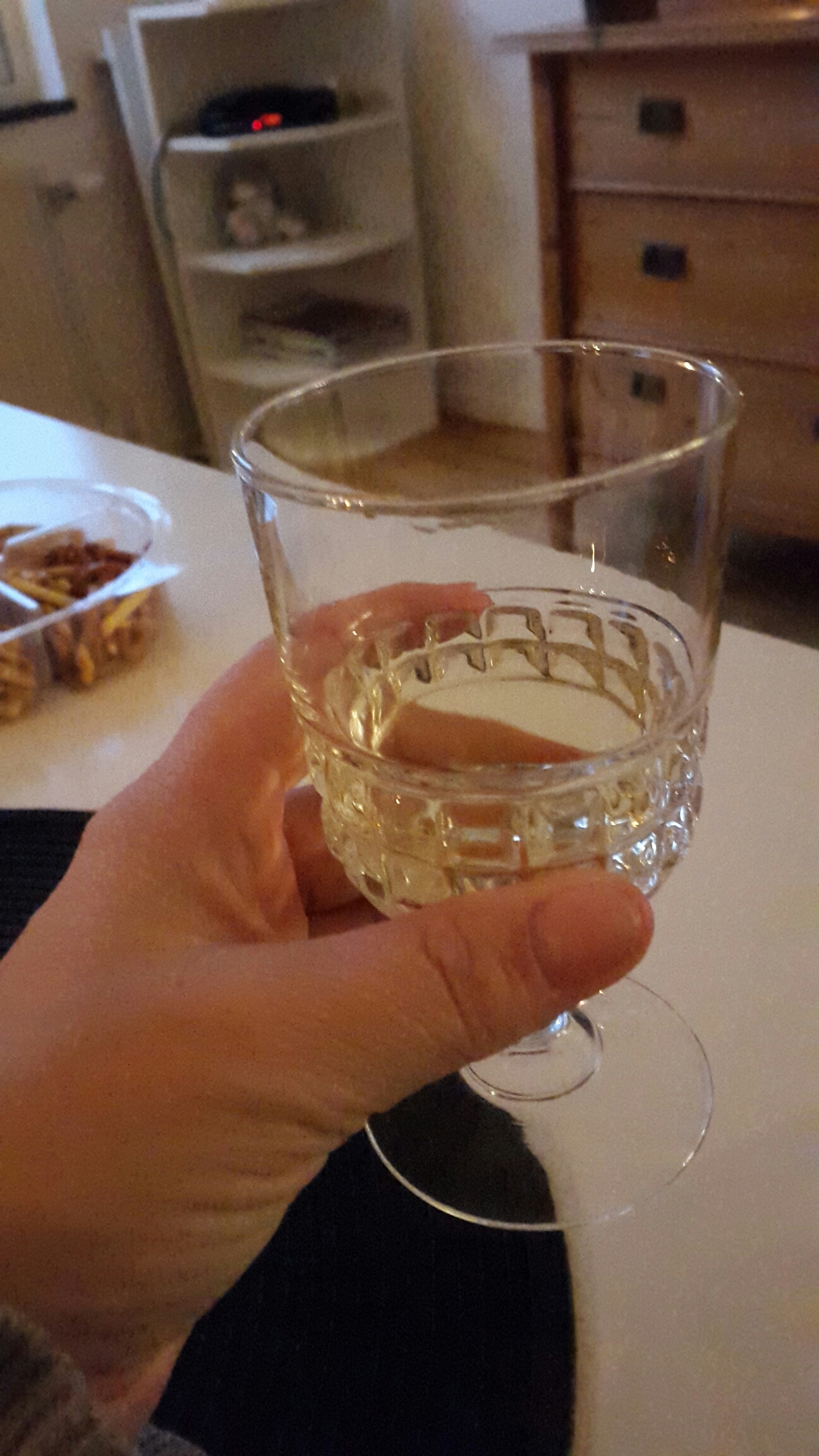 Vi fick varsitt glas chabli medan värdinnan lagade maten. Och vi sippade vin och babblade.