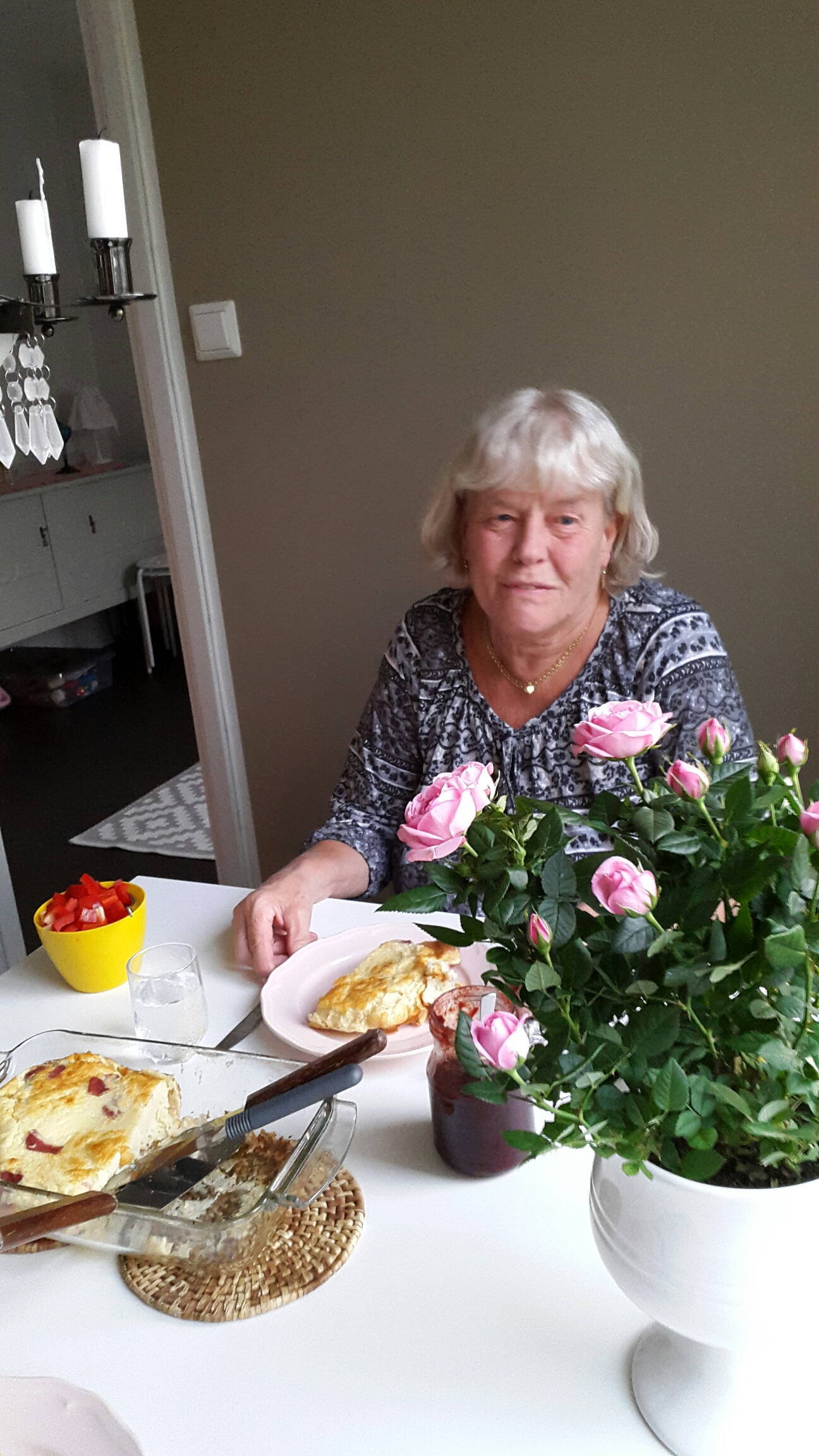 Igår hade hon med en fin ros för att fira att stugan är såld, och för att det var mammas födelsedag.