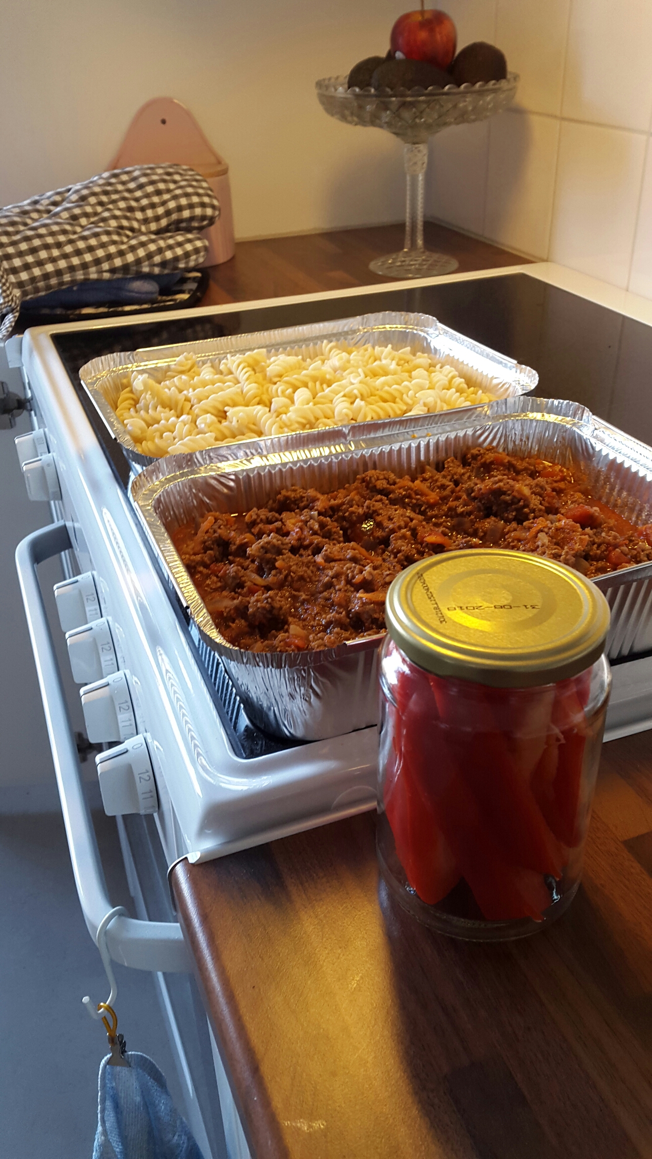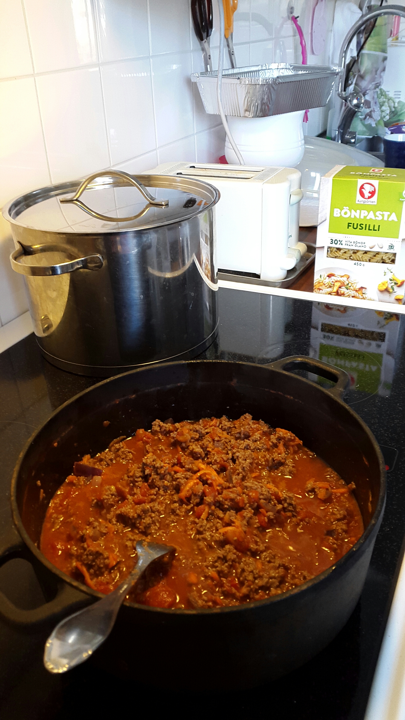 Igår lagade jag en herrans massa köttfärssås och kokade bönpasta till.