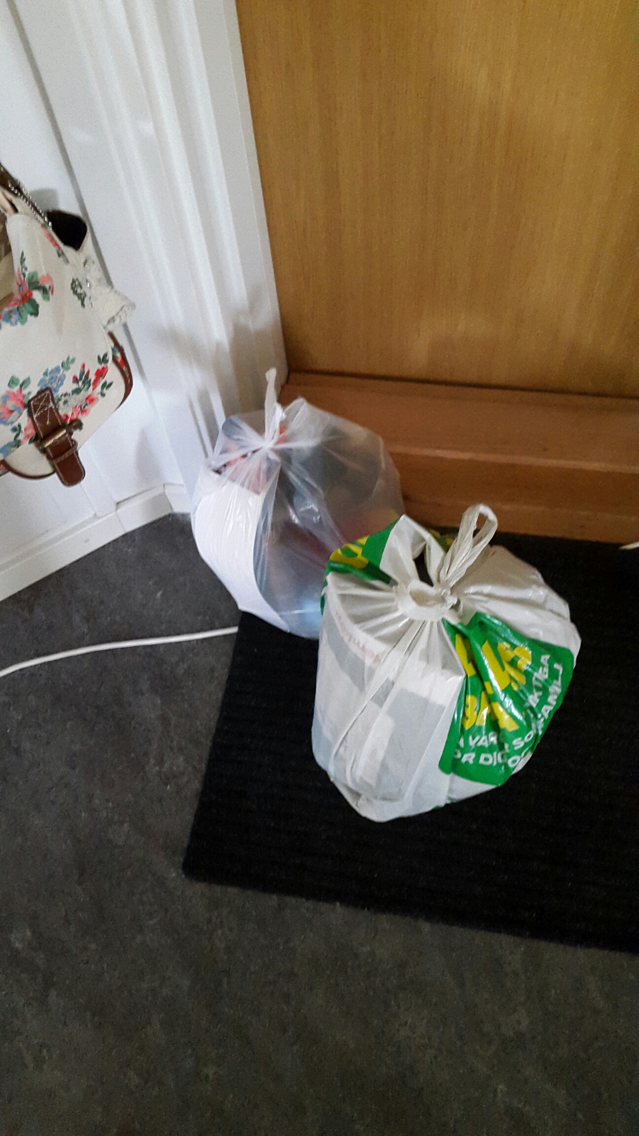 Då råkade jag öppna lådan där jag lägger kvitton. Den svämmade över… Så jag tog ur allihop. Det var nog kvitton sen jag flyttade hit! Slängde alla utom 4 eller 5. Så skönt!