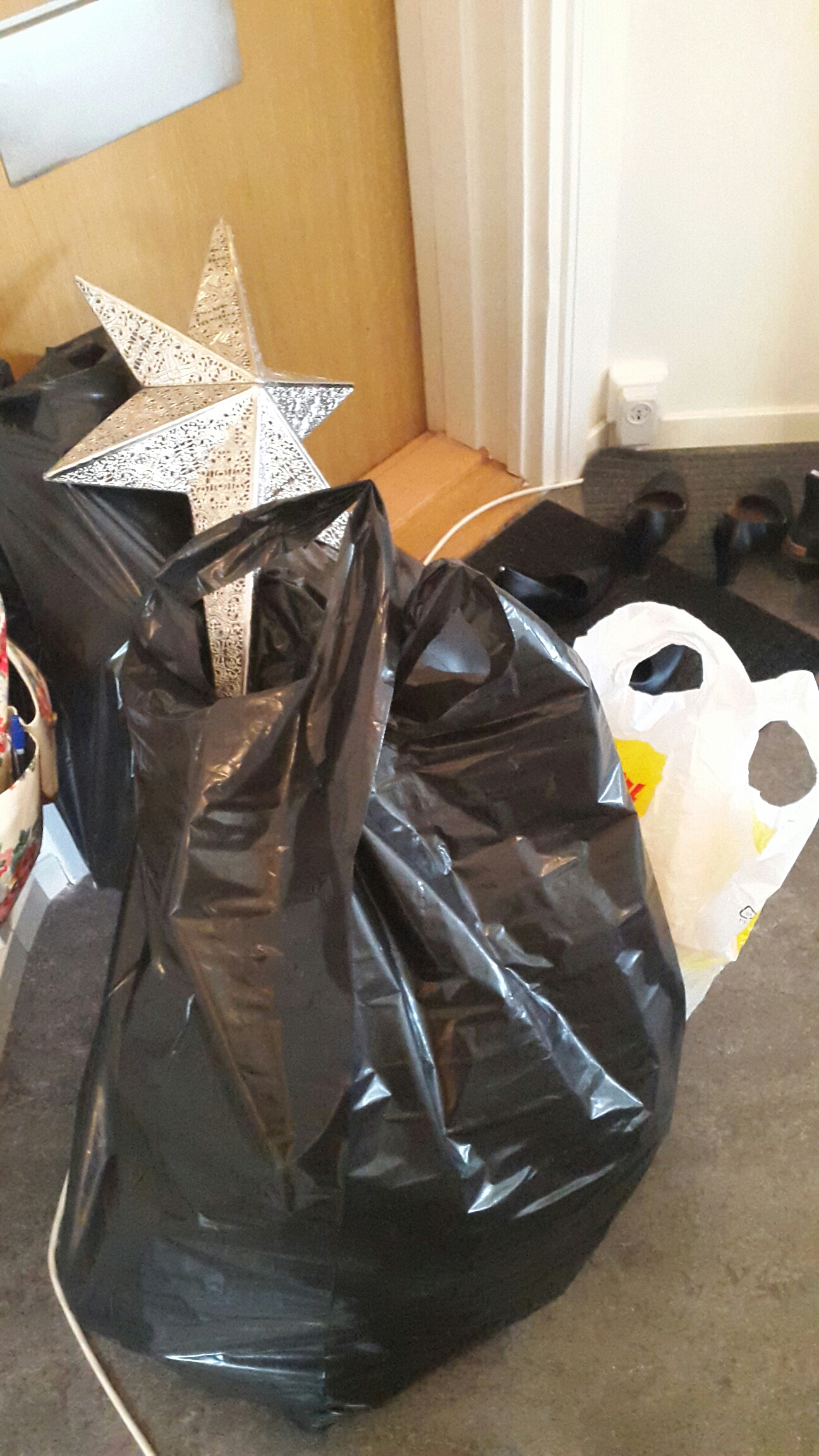 2 svarta sopsäckar med saker att slänga! ! 🙂