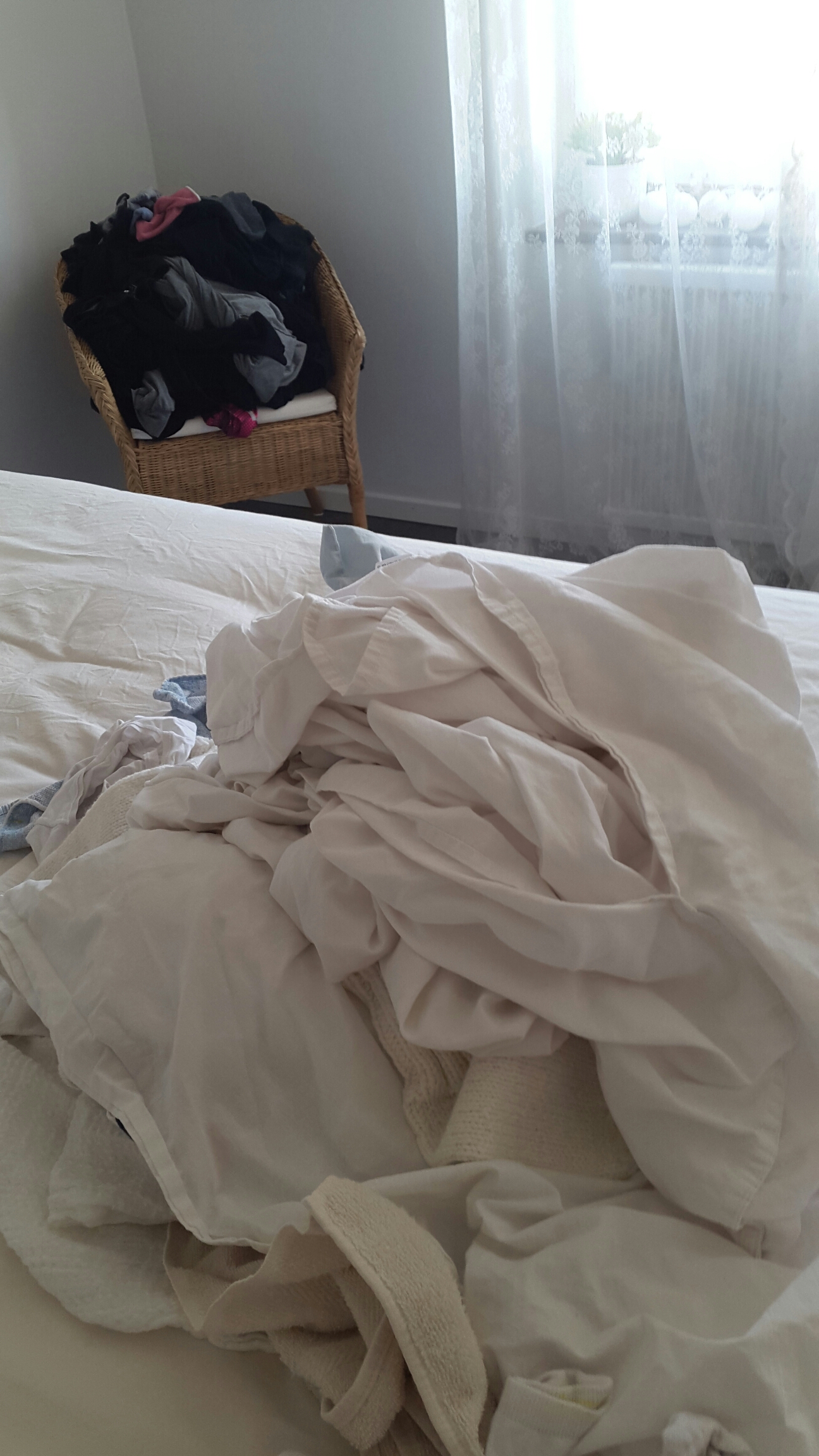 Det var 2 högar i sovrummet, lite som hängde på torkställningen och så en laddning som låg i tumlaren. Alltihopa har jag vikt nu! Känner mig vääääldigt duktig!