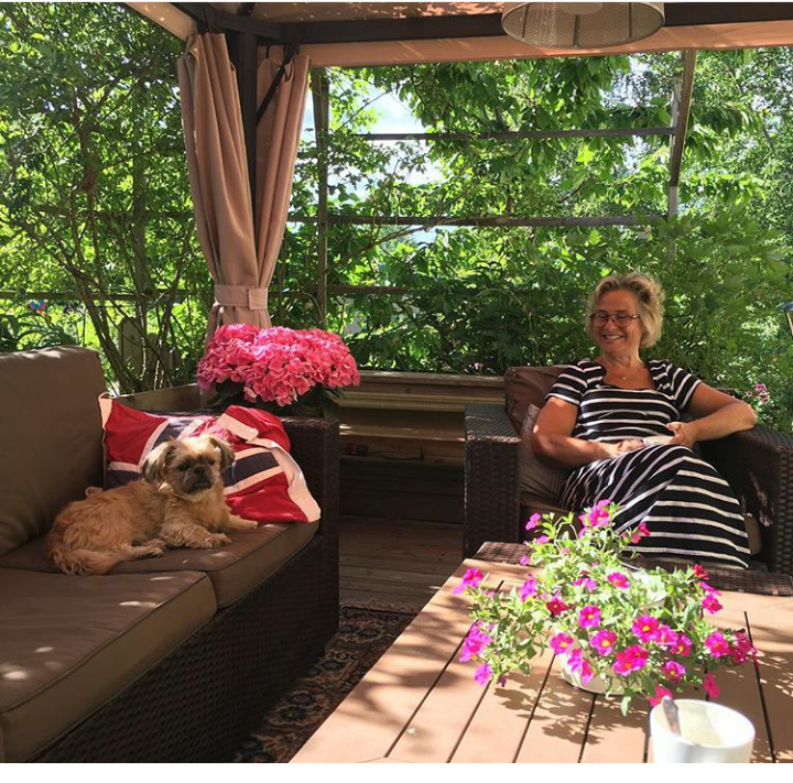 Så mysigt att sitta på deras uteplats i sommarvärmen och fika och babbla.