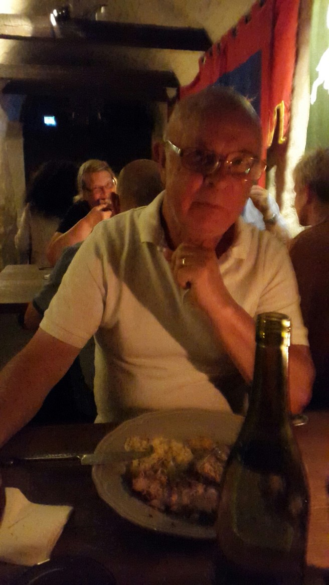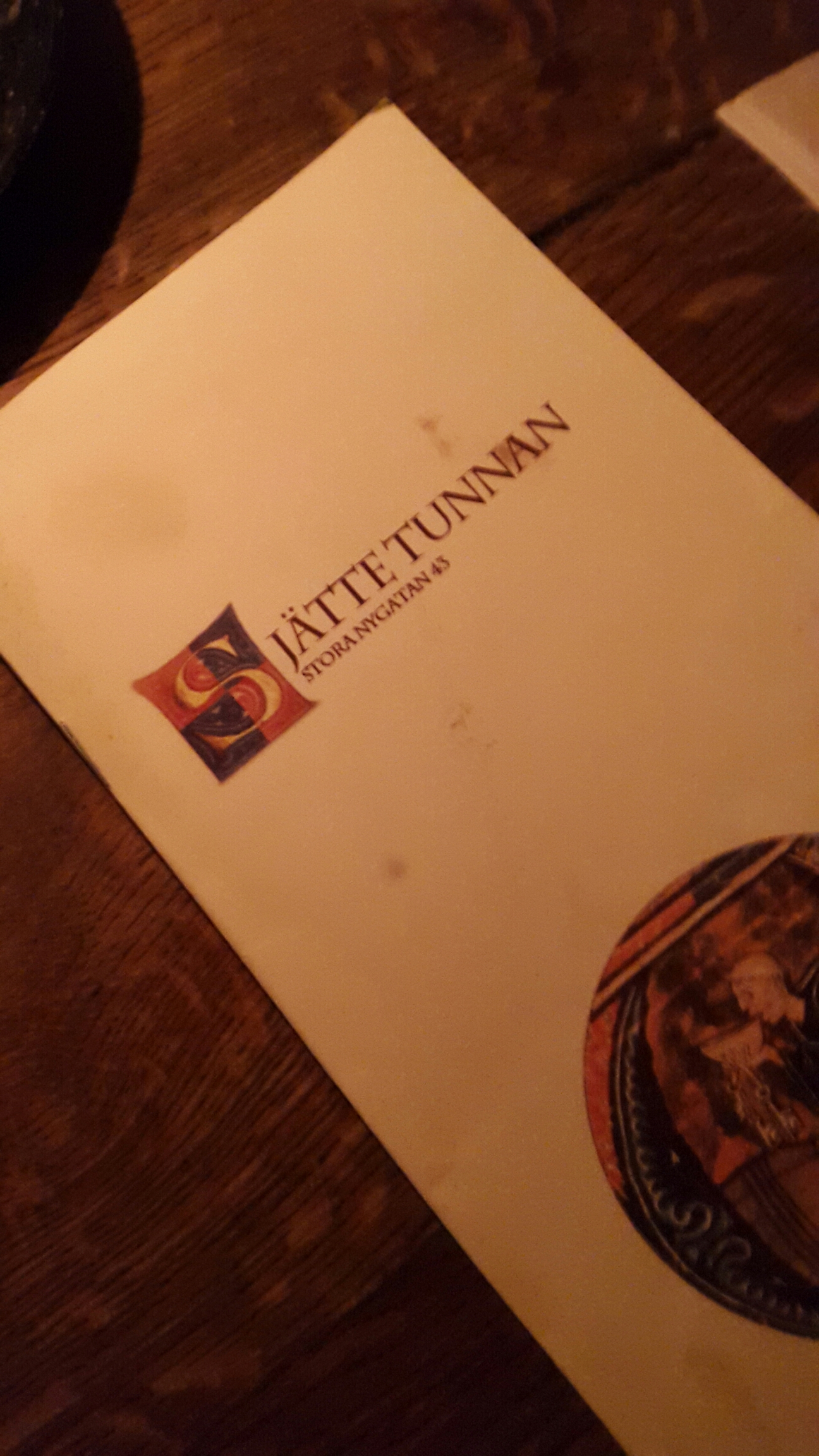 I källarvalven åt vi en laxtartar, revbensspjäll med senap och surkål och så en blåbärspaj med glass. Sen var vi proppmätta!