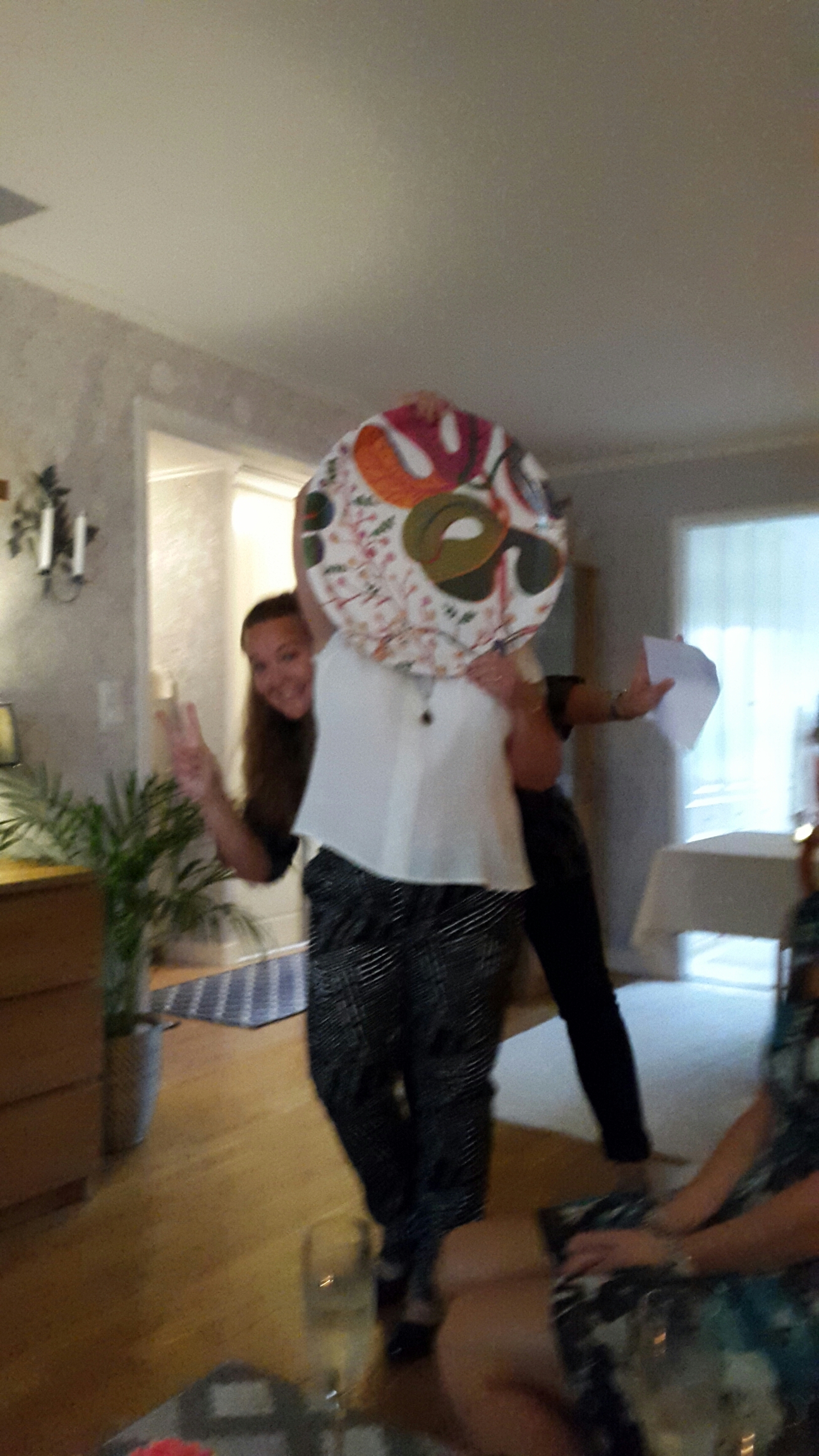 Bättre lycka nästa gång, då fick hon, som vi andra, en påse med en mini flaska bubbel, lite godis och så fick vi alla lite olika kul grejer. Nån fick en clownnäsa, en partyhatt eller som jag, en ögonlapp och en stor guldring att ha i örat så jag såg ut som en pirat. Hahaha!! Och så ett papper med en massa frågor dels om födelsedagsbarnet dels om året när hon föddes. Jättekul!