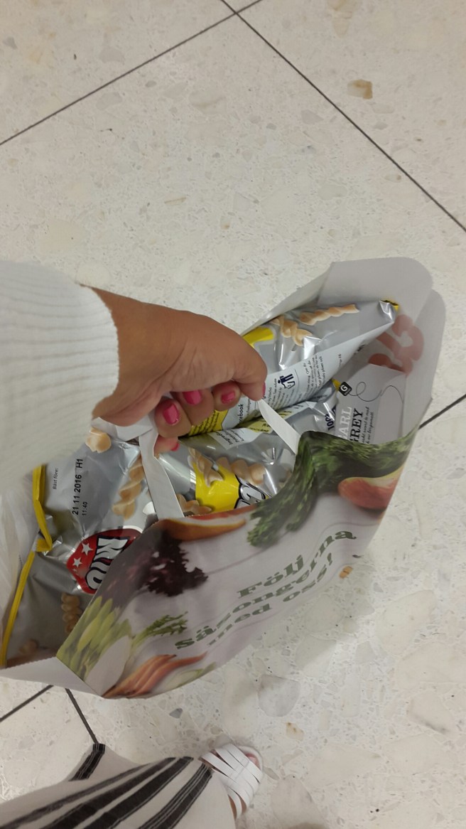 På vägen hem idag var jag och handlade. Först in i en affär och lyckades rota rätt på sockerfritt godis. Sedan in i nästa affär för att köpa hem middagsmat, frukt, grönsaker och annat till helgen.