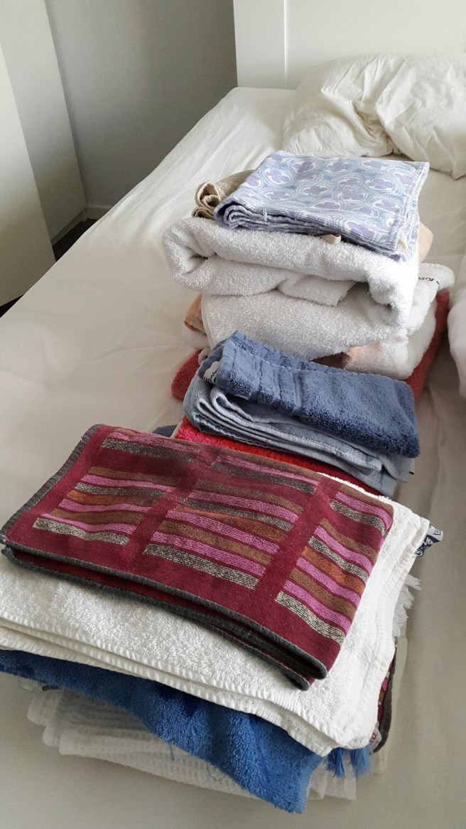 Jag tömde skåpet med alla handdukar och rensade bort gamla som jag inte vill ha kvar. Det blev en del…