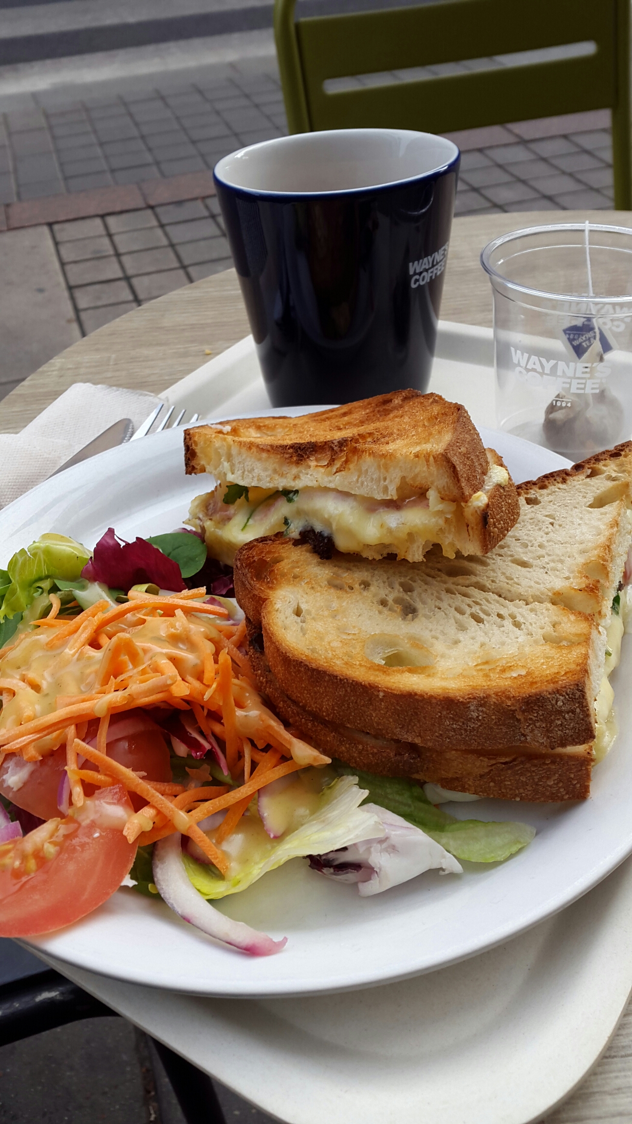 Sen åkte jag in till stan och satte mig på en uteservering och åt lite.