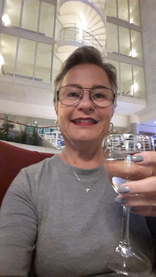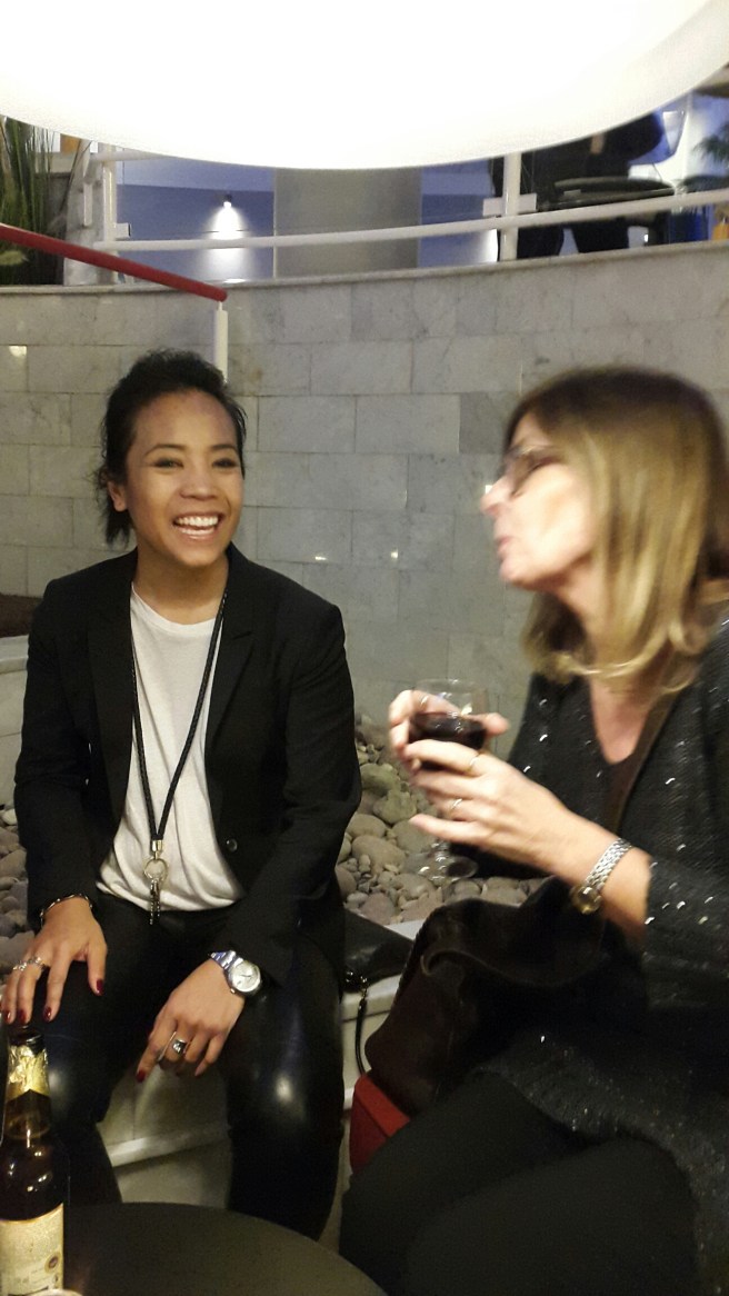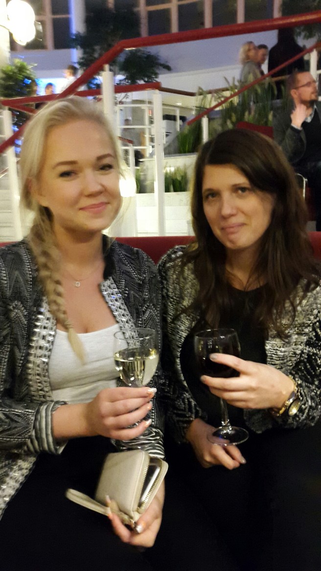 Fanny och Erika skålar! Vi fick 2 drinkbiljetter var.