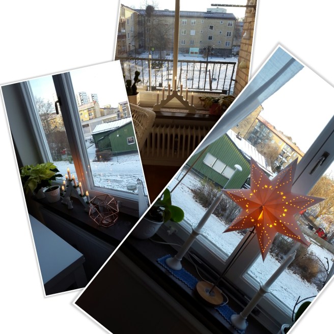 Nu är alla de klapparna som ska med inslagna! Och när det var klart klättrade jag upp i överskåpet och rotade fram aventsstakar och stjärna .