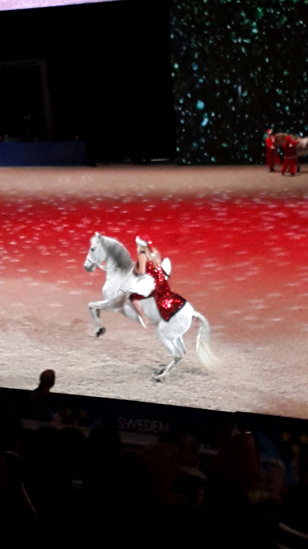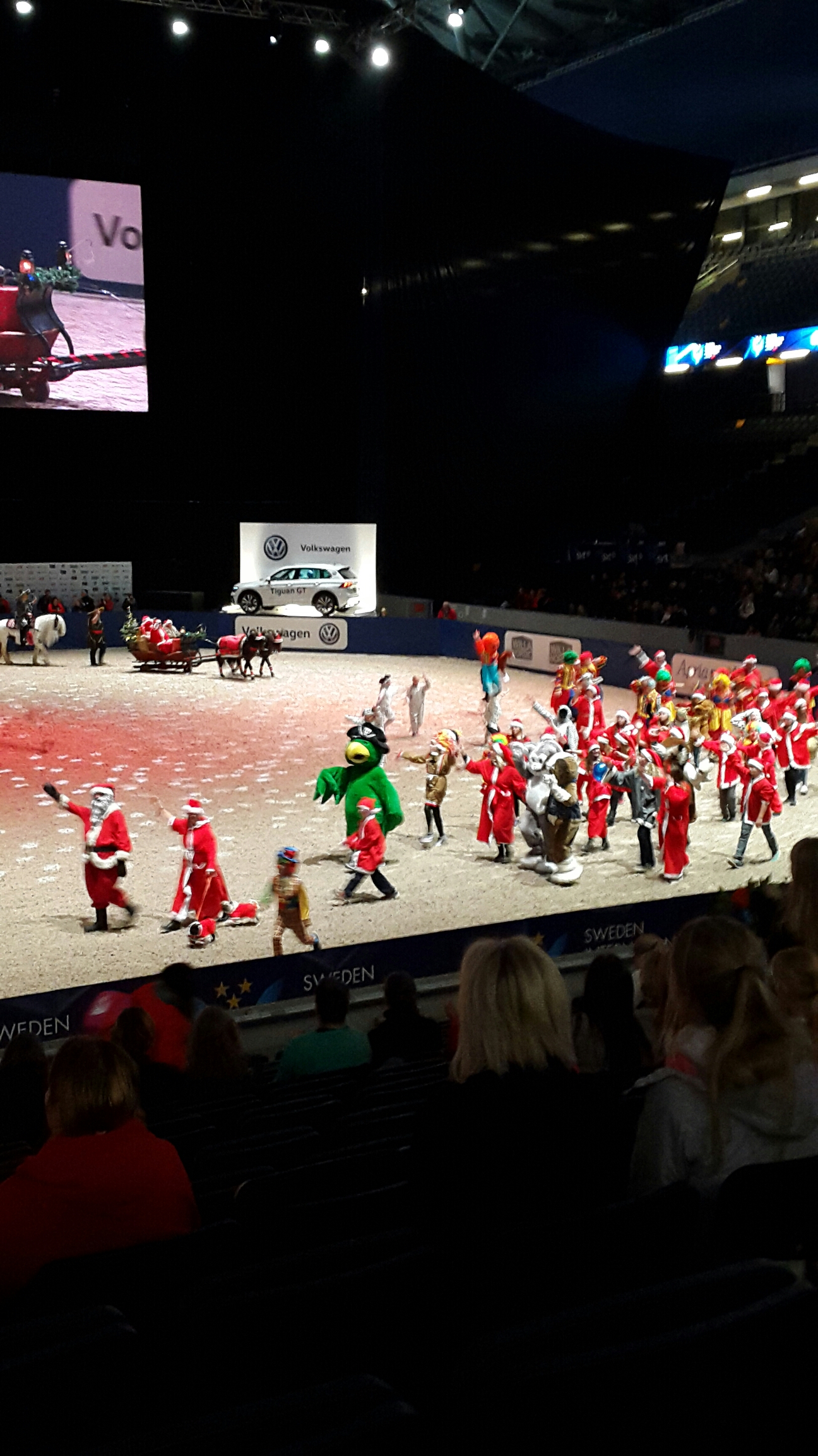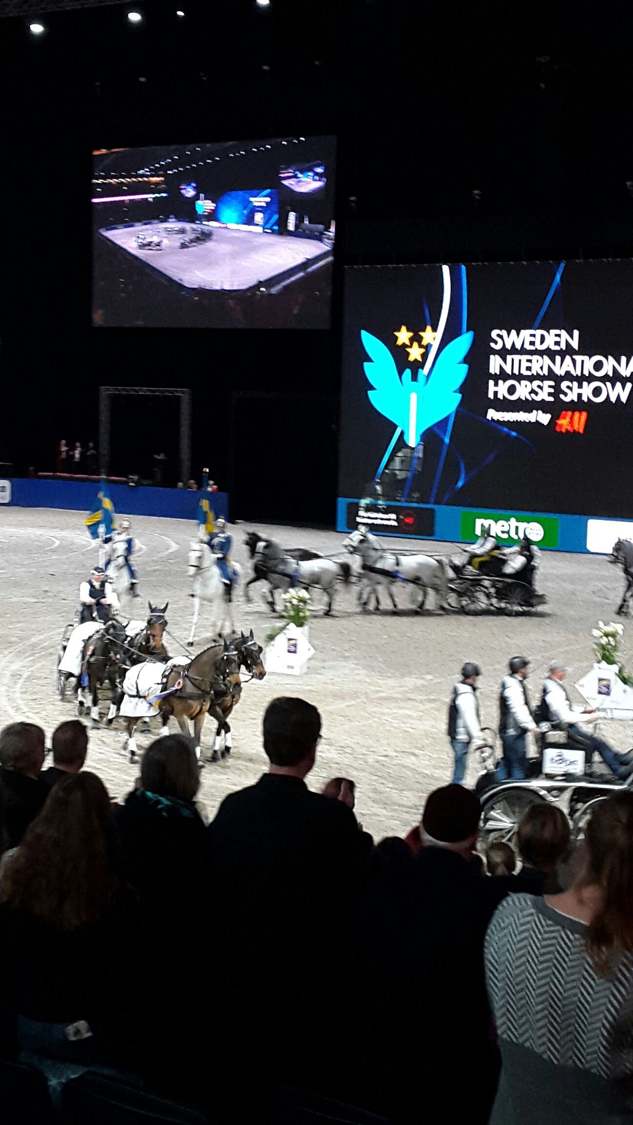 Därifrån drog jag sen, i riktig snöyra, till Nettis och Toyboy för vidare färd till Friends arena och avslutningen av Sweden Internationel Horseshow. Som vanligt kul, och fullt med folk! Toyboy och jag gick och satte oss medan Nettis och hennes medryttare gick och kollade på ridhjälmar och annat.