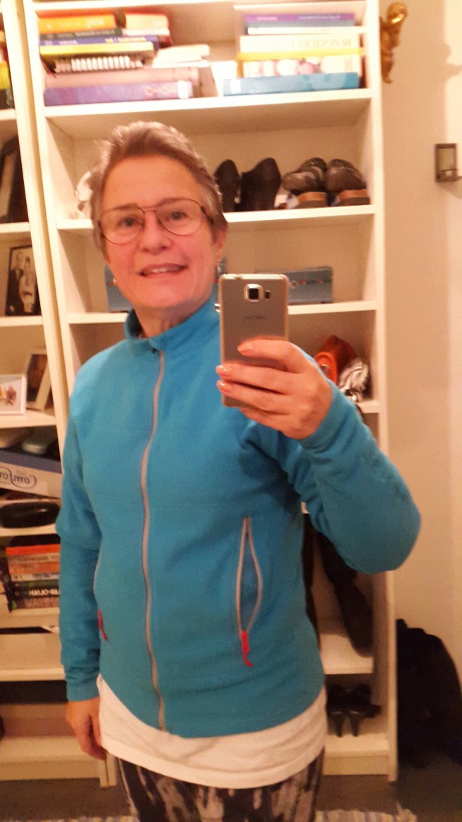 Sen gärnet hem,bytte om och så pluttra iväg och hämta upp Jaja och så till gymmet. Zumba stod på schemat. Det jag ägnade mig åt kan nog inte kallas för just zumba i och för sig.. Det var mer ett allmänt förvirrat viftande och trampande. Ibland åt samma håll som alla andra, men oftast inte. Andfådd blev jag och självklart svettig, så motion fick jag väl. Men Jaja och jag var båda överens om att det var för svårt för oss. För mycket olika steg med för snabba byten. Vi hängde inte med. Men nu har vi i alla fall provat!
