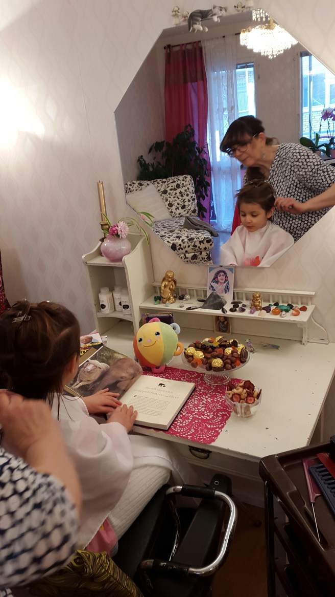 Båda 2 klippte sig och blev så fina. Och Bäbis åt 2 glassar hos Yvonne och kakor och choklad. Det är som att gå på kalas att gå till frissan, tycker Bäbis! Särskilt som man får med sig en påse med fina hårspännen, godis och annat fint!
